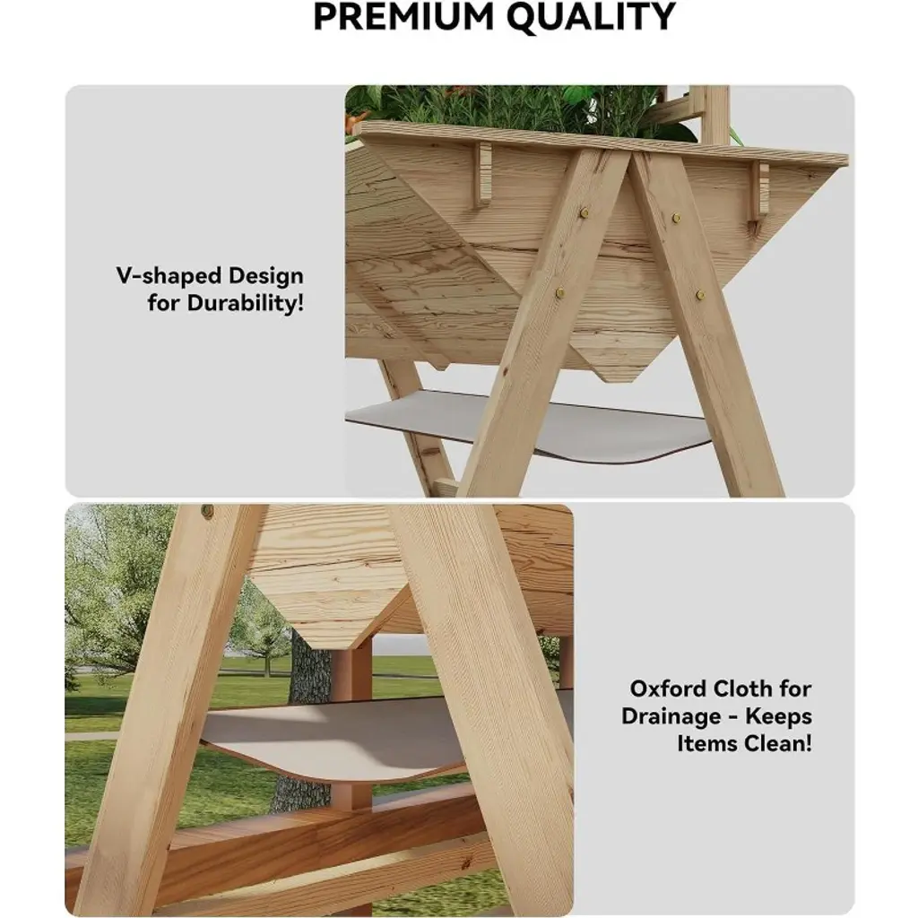 Grow your favorite vegetables, herbs, or flowers in style with the Raised Garden Bed with Legs, designed for both function and beauty. Made from durable natural wood, this elevated planter box stands at a comfortable working height, reducing strain on your back and knees. The built-in trellis frame offers strong vertical support for climbing plants like tomatoes, cucumbers, or flowering vines, maximizing your gardening space. Ideal for patios, balconies, backyards, or decks, this raised bed brings a charming, organized look to any outdoor area.