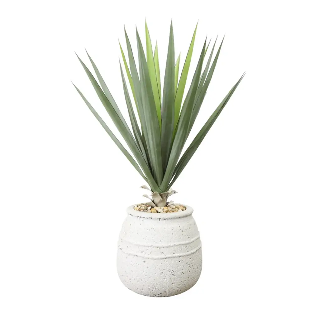 Bold, sculptural, and effortlessly stylish-the Rassy Green artificial plant brings modern greenery to life. Standing 41 inches tall and 21 inches wide, this lifelike agave plant features vibrant, UV-resistant leaves that stay fresh and vivid year-round. Set in a chic white resin planter with decorative pebbles, it adds a clean, contemporary touch to any indoor or outdoor space. Perfect for entryways, offices, or patios, this maintenance-free statement piece delivers natural beauty with lasting impact.