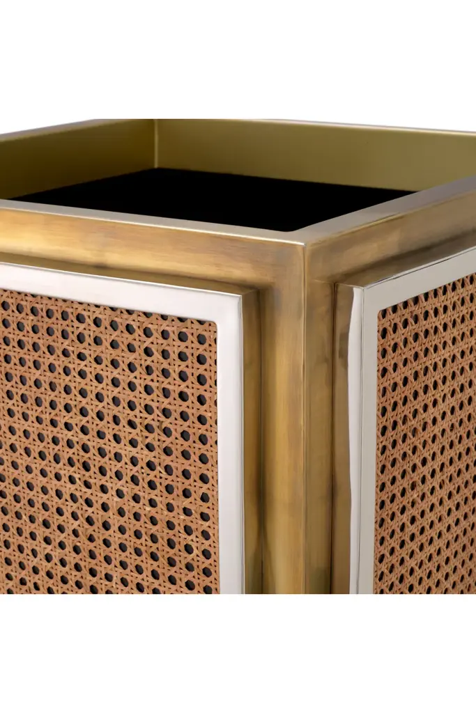 Elevate your interior design with the Planter Tropea, a fusion of metal craftsmanship and natural rattan. This Eichholtz piece, rendered in a vintage brass finish, offers a unique blend of materials that enhances any living space with a touch of sophistication. W24 x D24 x H20 in | Weight 53lbs W62 x D62 x H50 cm | Weight 24kgs Materials | Rattan, Stainless steel Download Specification Sheet W24 x D24 x H20 in | Weight 53lbs W62 x D62 x H50 cm | Weight 24kgs Materials | Rattan, Stainless steel Download Specification Sheet