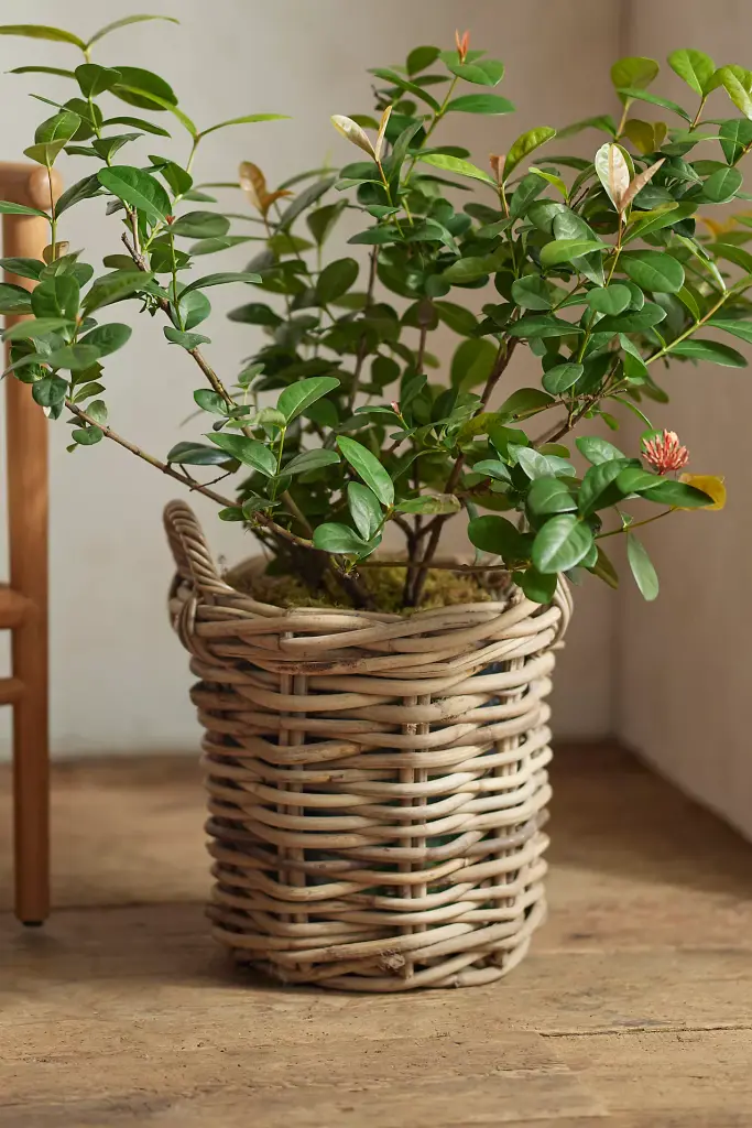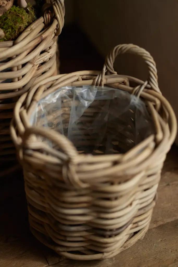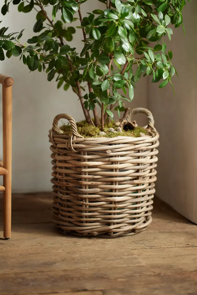 Handmade from rattan and topped with a pair of handles, this basket planter is finished with a plastic liner that makes it simple to drop in your favorite houseplants. Terrain is a garden and home brand deeply rooted in nature and plant life. From weather-ready planters and outdoor furniture to artisan-made wreaths and hand-poured candles, their curated product assortment explores the boundaries of life lived outside and in. With a globally conscious, locally influenced point of view, Terrain offers inspired seasonal solutions for creative living, gathering, and gardening.