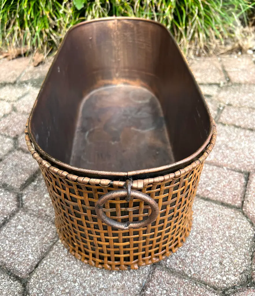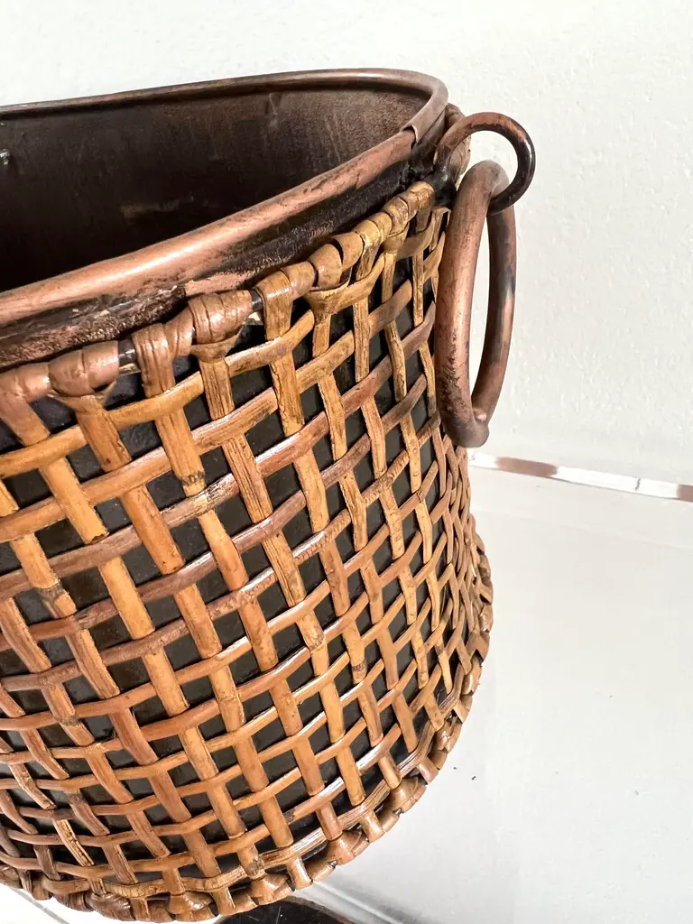 Rattan Wrapped Metal Planter With Round Handles