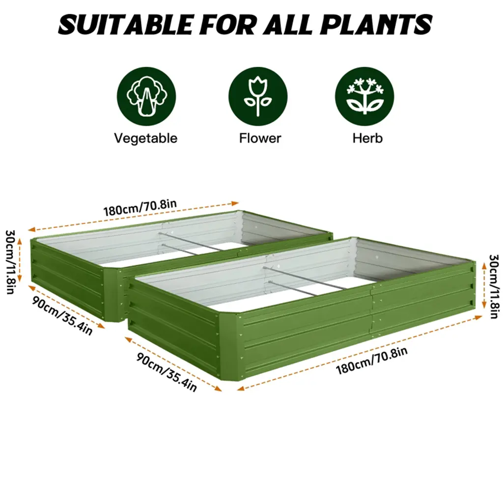 Rbied 6 X 3 X 1 Ft Green Rust-proof Metal Rectangular Outdoor Garden Bed Planter Box For Vegetables Flowers Herb (2-pack)