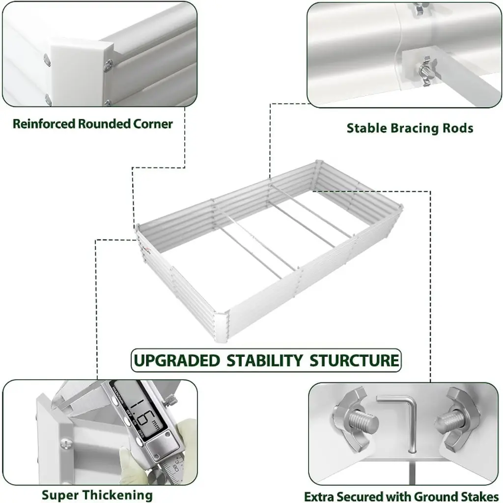 Rbied 8X4x1.5 Ft Galvanized Raised Garden Bed, Rectangle Above Ground Modular Metal Planter Boxes, Anti-rust & Easy-setup, Antique White