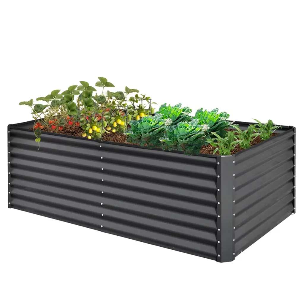 This thickened galvanized sheet metal flower bed is made of 0.8mm high-density material, which is sturdy and durable. The wavy structure enhances the pressure-bearing capacity and does not deform during long-term outdoor use. The surface powder coating is rust-proof and anti-corrosion, safe and environmentally friendly, does not pollute the soil, and protects the health of plants. The garden bed has rounded curling edges and no sharp edges, which makes installation safer. Gloves are included for intimate protection. The open base promotes drainage and root growth to avoid water accumulation and root rot. Simple assembly, pre-drilled design with complete screws, can be completed in a few minutes, easily creating a neat and beautiful outdoor garden!