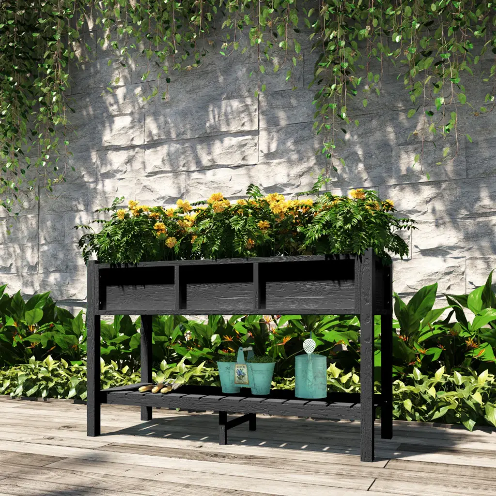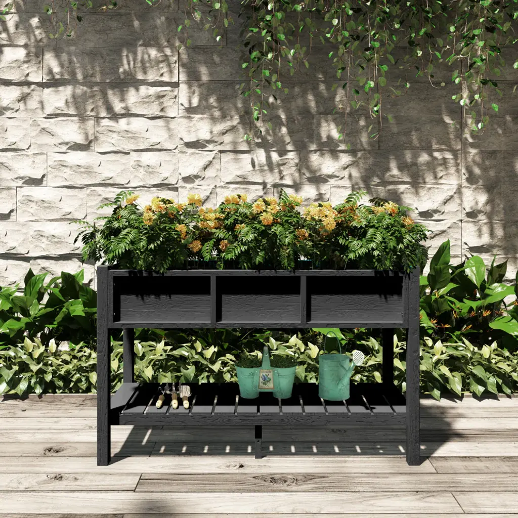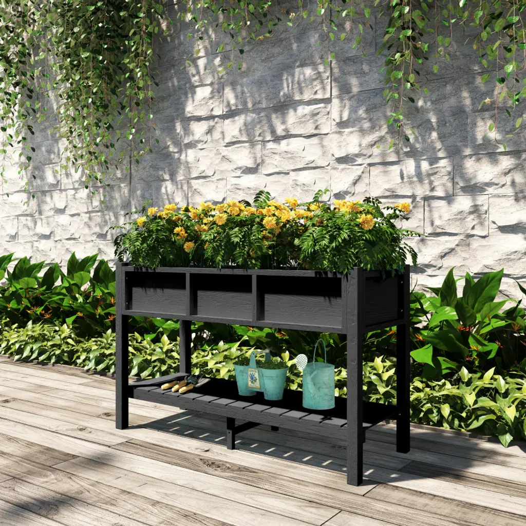 Rectangular Garden Planter Box Raised Garden Bed For Outdoor Balcony, Black