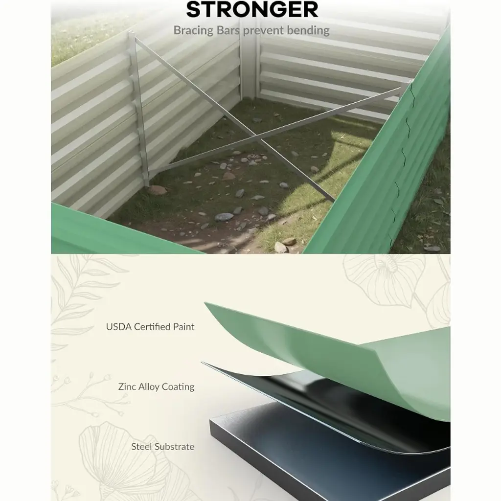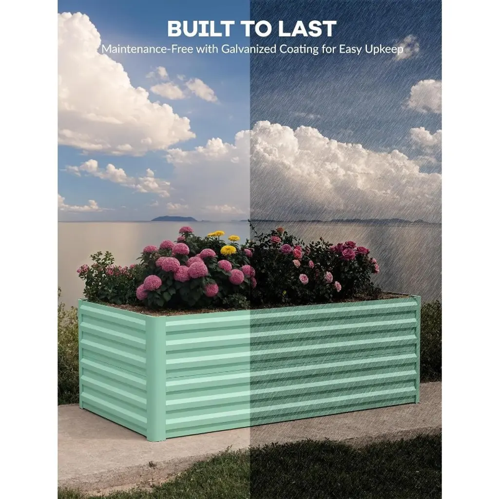**Elevated Raised Garden Bed for Vegetables, Herbs, and Flowers ¨C Ergonomic Green Planter with Complete Starter Kit**Nurture your plants and your well-being with this thoughtfully designed raised garden bed. Perfect for gardens, patios, and balconies, its accessible height and spacious layout make gardening enjoyable for everyone. Crafted from durable galvanized steel and finished in a soft green tone, this planter combines functionality with aesthetic appeal¡ªwhether you're growing vegetables, herbs, or vibrant flowers.**Key Features:**1. **Ergonomic Accessible Gardening at Comfortable Height** Designed at an optimal height to minimize bending and reduce back strain, this garden bed brings gardening within easy reach for gardeners of all ages and abilities. Its user-friendly design promotes a comfortable and therapeutic gardening experience.2. **Complete Starter Kit for Immediate Planting** Everything you need to get started comes included: assembly tools and cushioned gloves are provided, allowing for quick setup and a smooth gardening journey right out of the box¡ªwith no additional purchases required.3. **Space-Efficient Oval Shape with Decorative Appeal** The sleek oval design maximizes growing area without occupying excess space, making it ideal for compact balconies, patios, or small yards. Its attractive green finish blends seamlessly into modern outdoor settings, offering both functionality and visual charm.4. **Durable Galvanized Steel for Long-Lasting Use** Constructed from corrosion-resistant galvanized steel, this garden bed stands up to rain, sun, and temperature changes without rusting or deteriorating. Its sturdy, low-maintenance build ensures years of reliable growing seasons.5. **Versatile Planting for Diverse Gardening Goals** Whether you're cultivating fresh herbs for the kitchen, starting a vibrant flower garden, or growing your own vegetables, this raised bed supports a wide range of plants. It¡¯s the perfect flexible solution for beginners and experienced gardeners alike.**Specifications:** - **Material:** Galvanized Steel - **Color:** Green - **Product Dimensions:** 3D x 6W x 2H Feet - **Item Weight:** 71.65 lbs - **Special Features:** Ergonomic height, includes tools and gloves - **Style:** Modern oval raised bed - **Usage:** Outdoor - **Included:** Assembly tools, gardening gloves