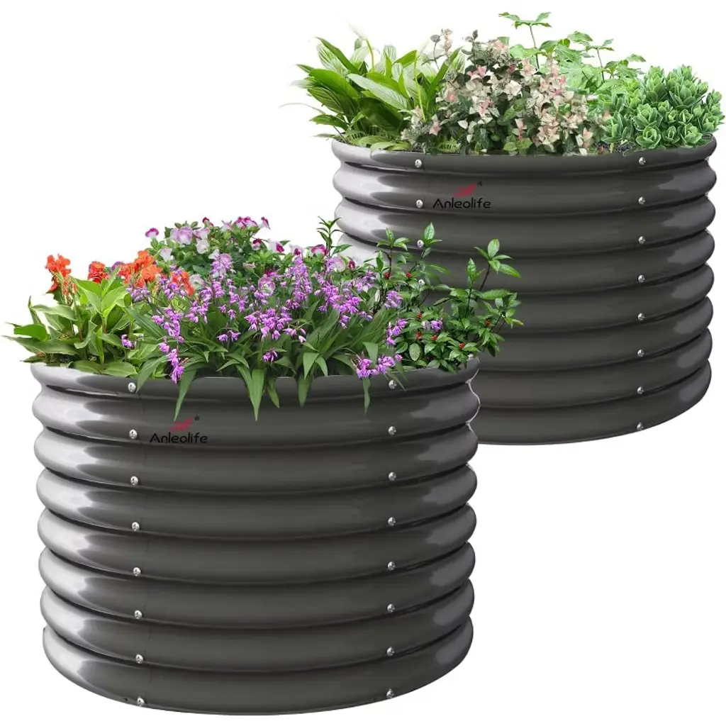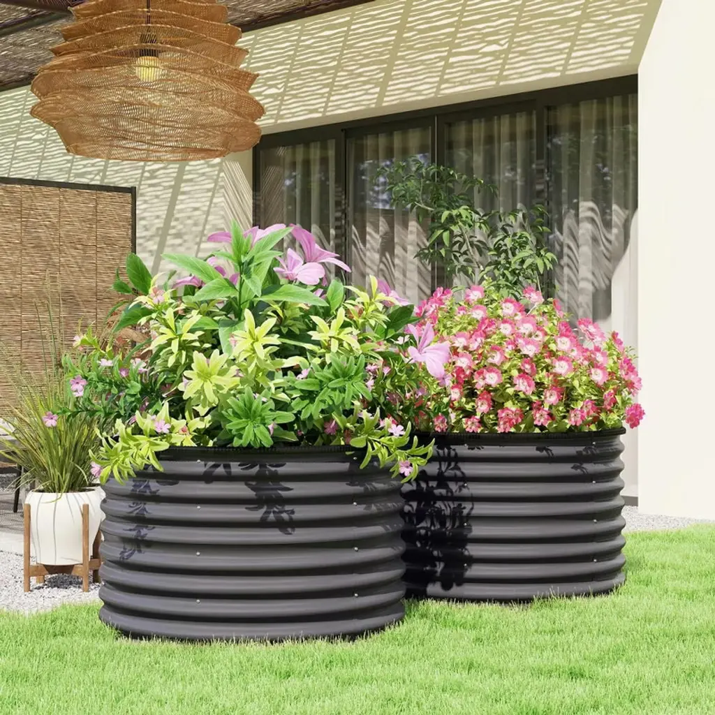 Resenkos Patio Planting Bed, Raised Garden Bed,set Of 2 Raised Garden Bed, Metal Planter Box With Safety Edging, Dark Gray