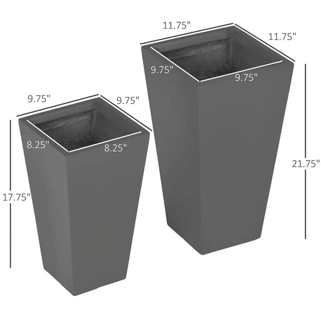 Offers extra large planters that make landscaping easy. With two sizes that stack into a convenient package, this set offers the modern, simple style of concrete with lightweight, easy-to-carry magnesium oxide. No more worrying about water logging; with a rain-draining hole found on the bottom, our two large planters mitigate excess moisture. Placed on the patio, porch, courtyard, or garden, they offer enough space for your favorite flowers, shrubs, or even a tree. - Color: Black - Material: Magnesium oxide - Overall Dimensions: 11.75" L x 11.75" W x 21.75" H, 9.75" L x 9.75" W x 17.75" H - Inside Pot Dimensions: 9.75" L x 9.75" W x 20.5" H, 8.25" L x 8.25" W x 16.5" H - Weight Capacity: 220lbs, 154lbs - Item Weight: 28.6 pounds Package Includes: - 2 x Planter Box Resenkos Plant Pots, Flower Pots, Garden Planters,2-Pack Outdoor Planter Set, Flower Pots with Drainage Holes, Durable & Stackable Plant Pot,Black