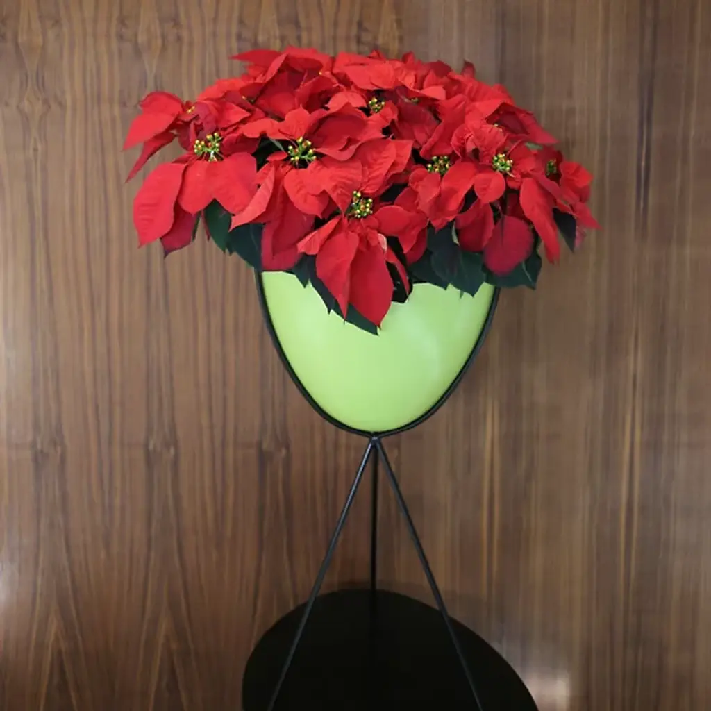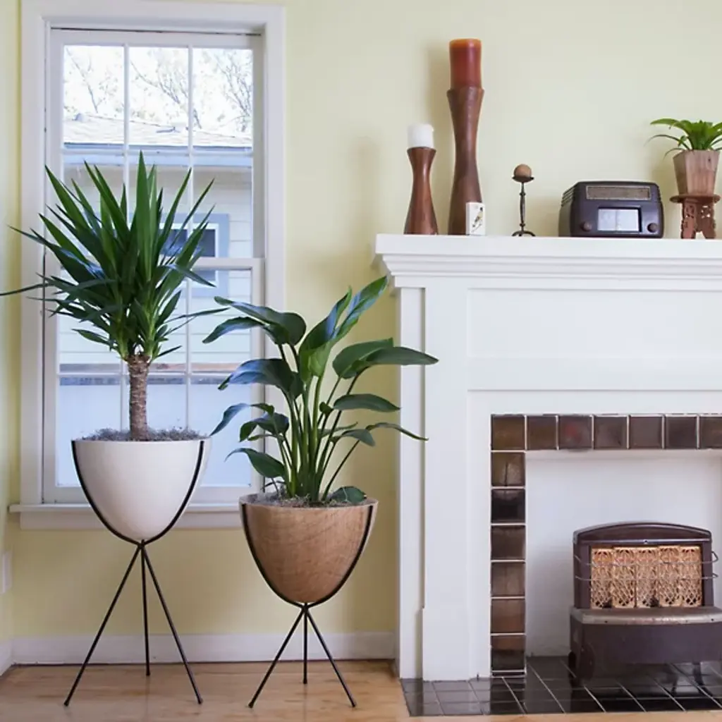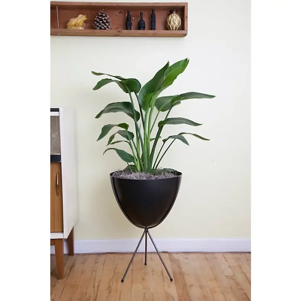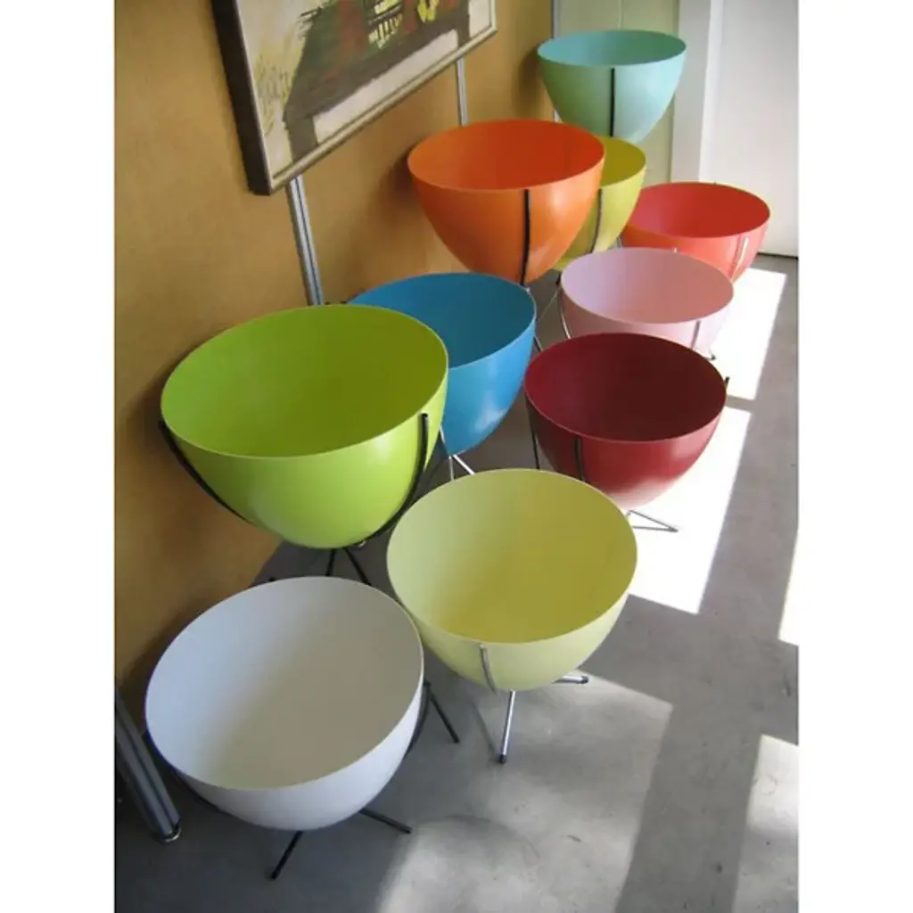 Mid-century modern for the 21st century. The Hip Haven Retro Bullet Planter has the same shape and is made using the same materials as the vintage 1950s originals. The bowl is compression-molded out of lightweight, colorful fiberglass, its rounded conical form held upright by a black steel tripod stand. Use as a planter, ice bucket or storage indoors or in protected outdoor areas.
