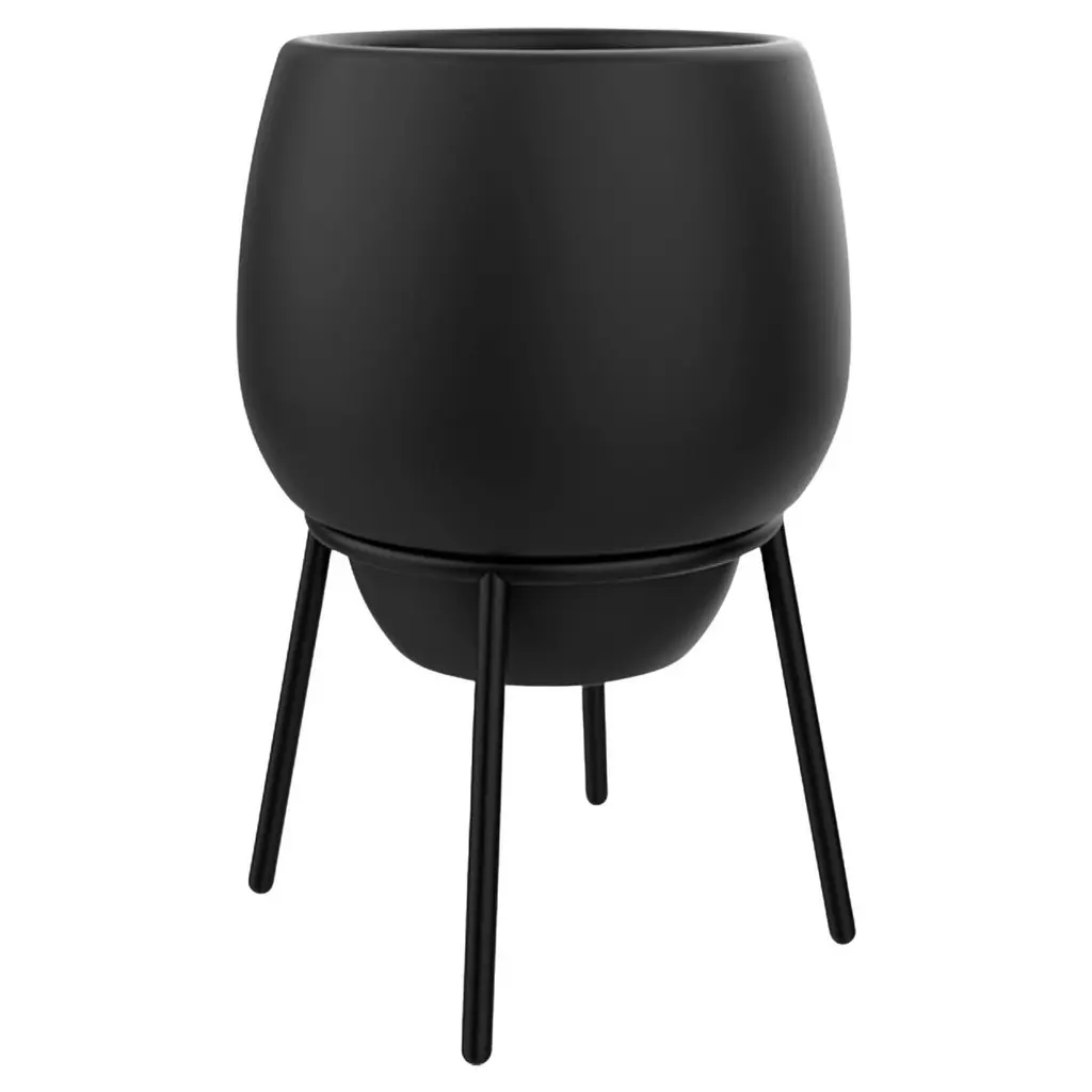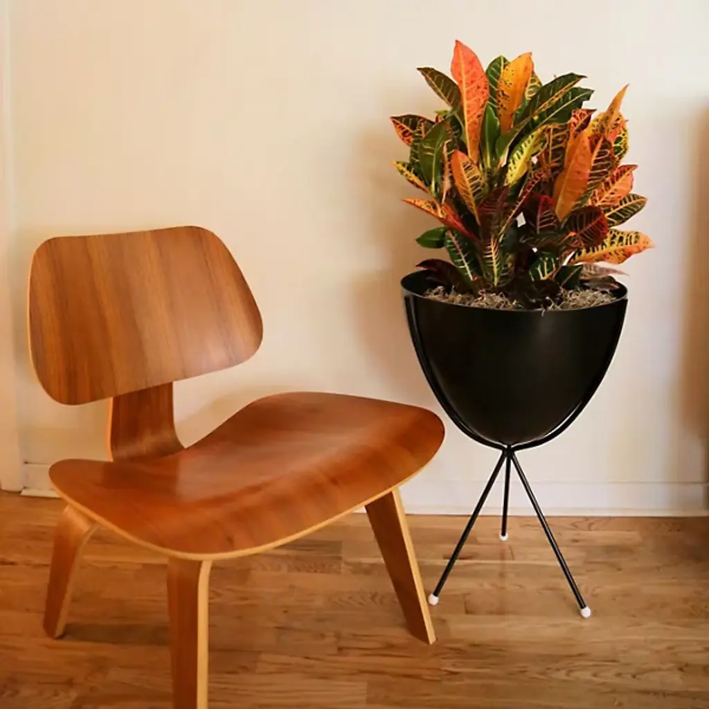 Mid-century modern for the 21st century. The Hip Haven Retro Bullet Planter has the same shape and is made using the same materials as the vintage 1950s originals. The bowl is compression-molded out of lightweight, colorful fiberglass, its rounded conical form held upright by a black steel tripod stand. Use as a planter, ice bucket or storage indoors or in protected outdoor areas.
