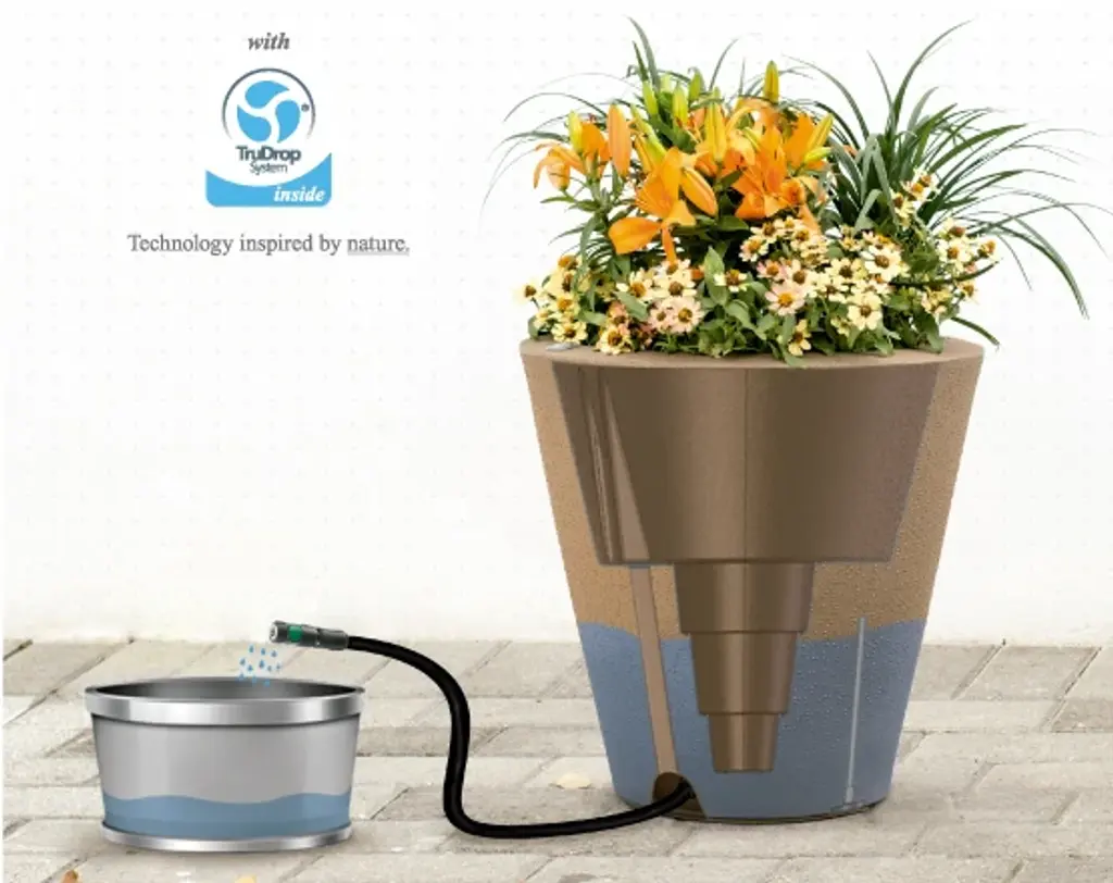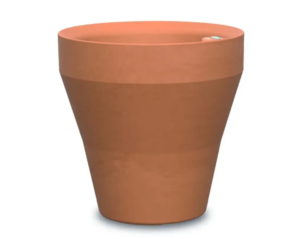 Reinterpreting the old, our Rim planters mimic traditional Italian rimmed clay containers. Unlike their predecessors, these modern self-watering planters are incredibly versatile in design and can be used to complement any style home from Mediterranean to Modern. This timeless planter features the built-in TruDrop One system, which is an innovative self-watering technology that reduces the need for frequently watering your plants. Trudrop self-watering planters will let you go weeks without watering. An easy to read water level indicator takes the guesswork out of watering, while the large water reservoir lets your roots take the water they need for successful gardening in containers.