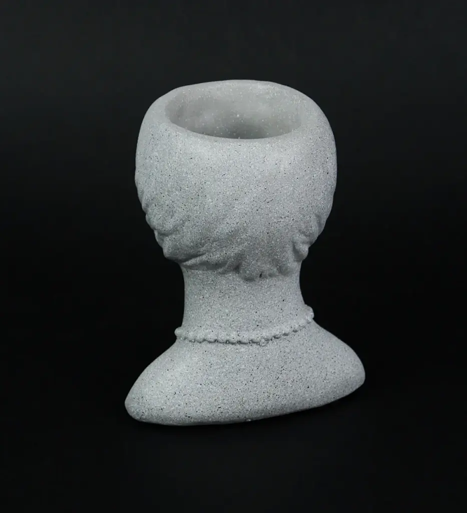 Roaring 20's Flapper Lady Gray Concrete Head Mini Planter 6 Inches Tall