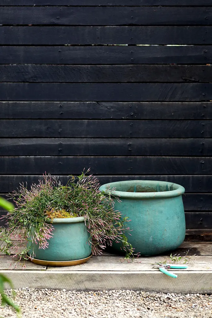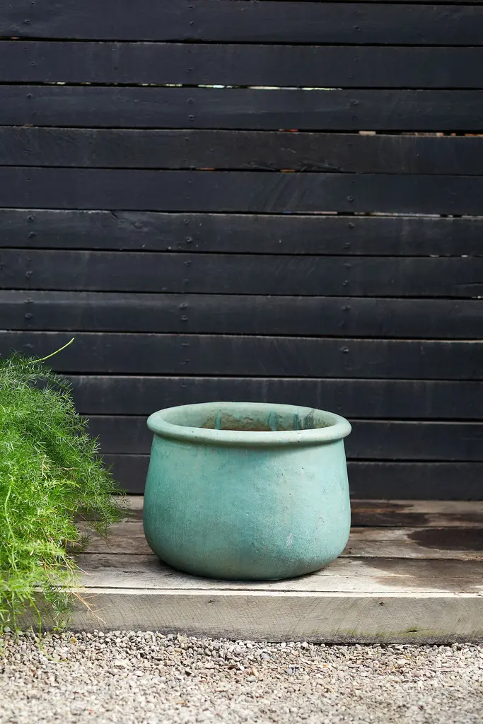 Aged texture and natural tones combine for a simple, striking planter that looks great in any style container garden, indoors and out.