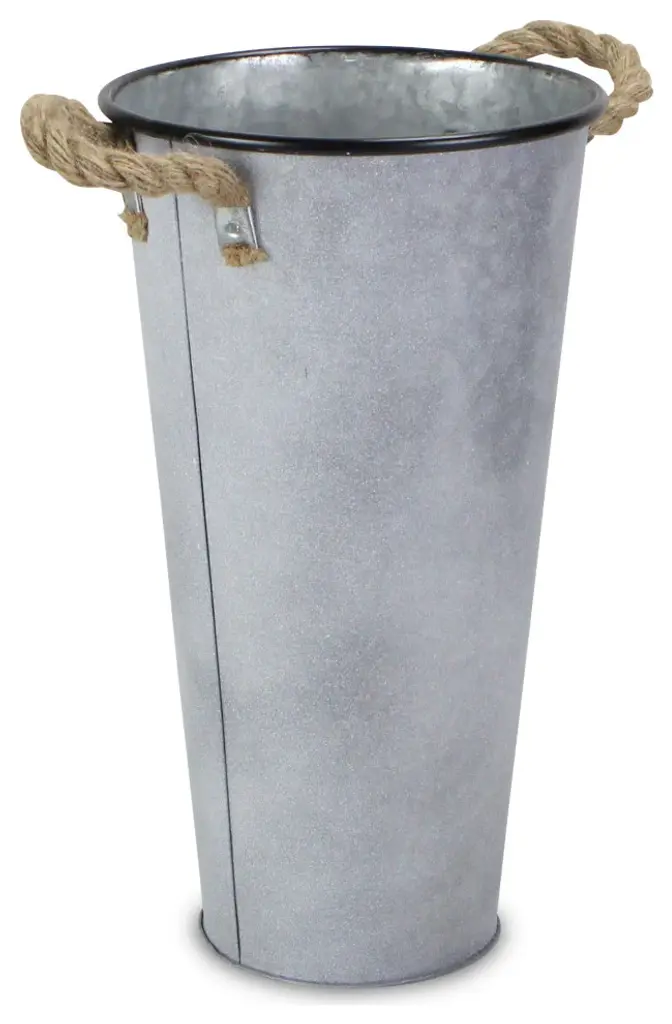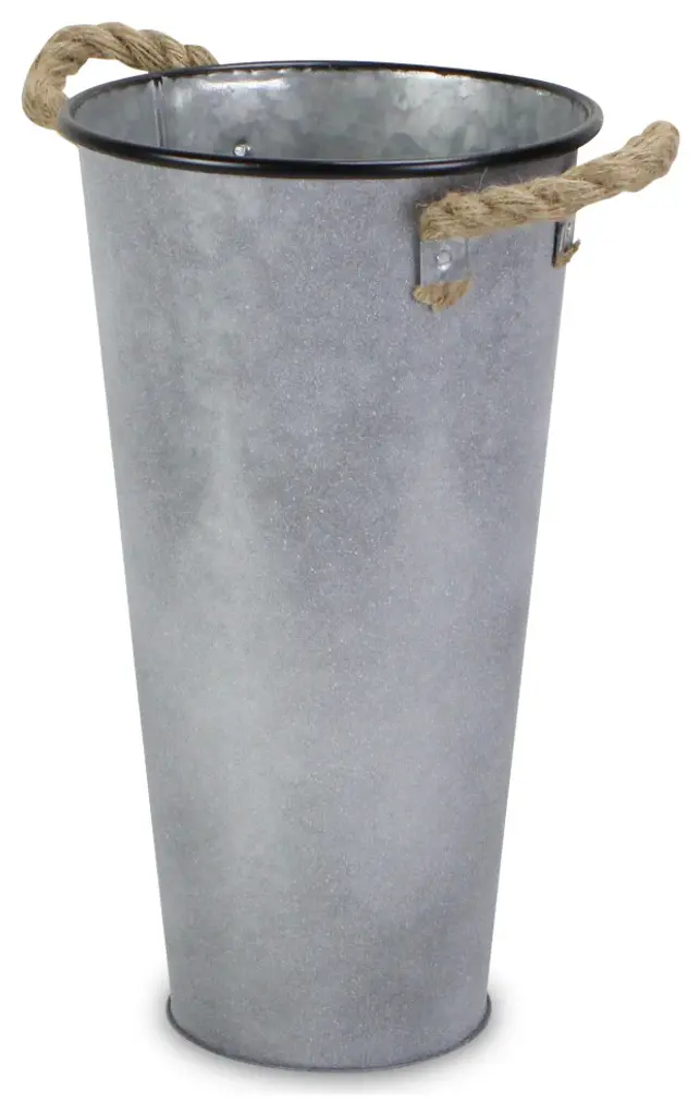 Enhance your garden or patio space with the Rope Handle French Metal Planter. Simple yet charming, the Rope Handle French Metal Planter is sleek in design and the perfect addition to your outdoor space. Crafted from brushed galvanized metal, the Rope Handle French Metal Planter features natural rope side handles and a slim tapered shape. Whether you utilize this garden planter for storage, or simply as a decorative accent piece, the Rope Handle French Metal Planter will effortlessly elevate your garden decor. The Rope Handle French Metal Planter is not intended for use with live plants without a plastic liner.