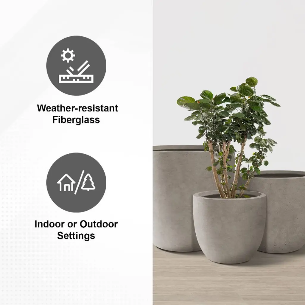 The Kante Round Planter Set combines modern style with lasting durability, featuring three weather-resistant pots crafted from lightweight yet sturdy concrete in a seamless, contemporary design that complements any indoor or outdoor décor. Built-in drainage holes promote healthy plant growth by preventing waterlogging, while the versatile sizing makes them perfect for everything from backyard gardens and patios to indoor living spaces. Easy to move yet strong enough to withstand the elements, these planters deliver the ideal blend of function and style—serving as both practical containers and decorative accents that elevate any home or garden with timeless sophistication.