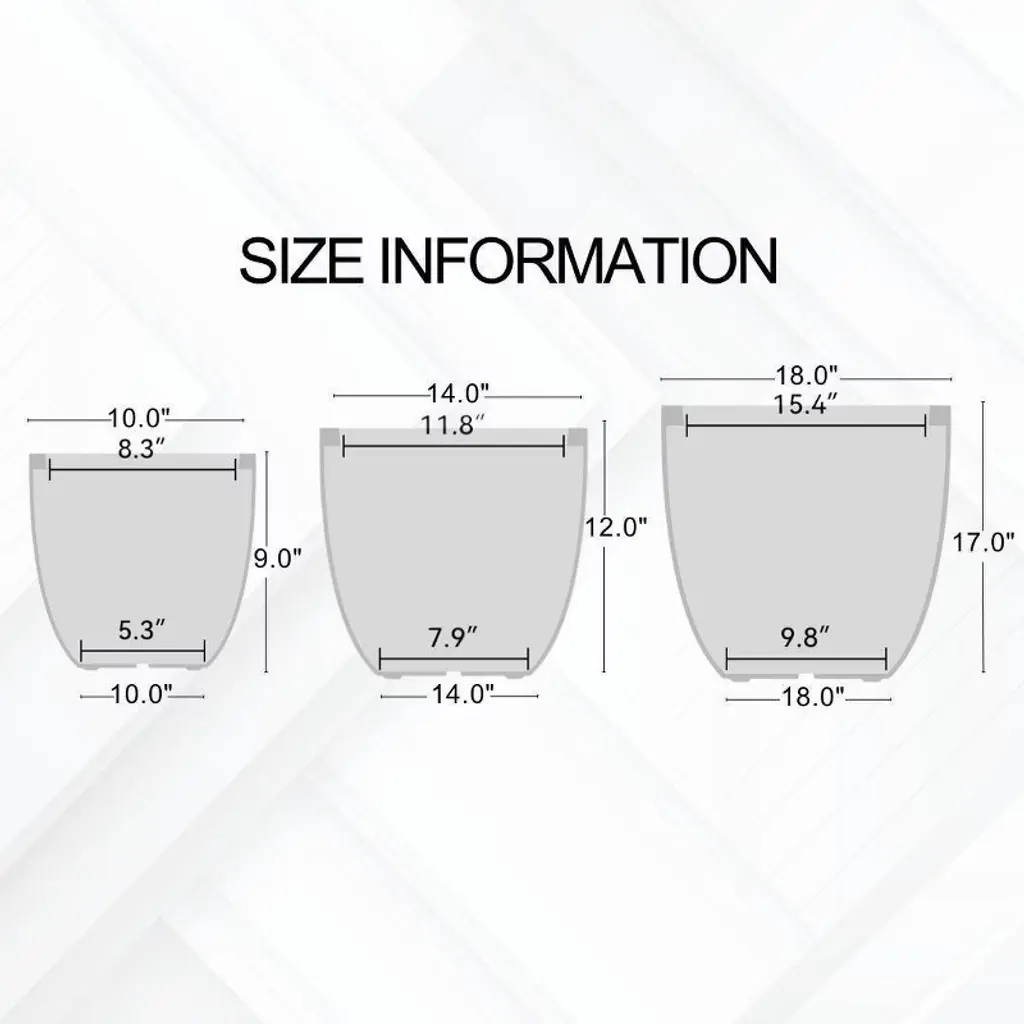 Rosemead Home & Garden 3Pc Concrete Outdoor Planter Pots Beige 18"x18"