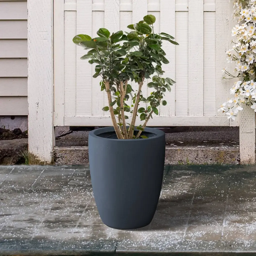 The Kante round charcoal planter is a durable yet stylish choice for both indoor and outdoor use. Featuring a seamless design and drainage hole, this lightweight planter ensures healthy plant growth by preventing water accumulation. Its weather-resistant construction guarantees long-lasting performance, making it ideal for patios, gardens, or indoor spaces. The modern, sleek design fits easily into any home decor or garden aesthetic, offering a practical and elegant solution for your planting needs. Whether used as part of your garden decor or patio pots, this planter's charcoal finish and durable build make it an essential piece for any space. Its versatile design allows it to complement a variety of settings, from contemporary to traditional.
