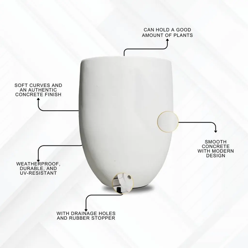The Kante Round Pure White Planter combines sleek modern style with everyday functionality, making it a perfect addition to any indoor or outdoor space. Crafted from lightweight yet durable concrete, this planter features a smooth, seamless finish that adds a touch of sophistication while blending effortlessly with any décor. Built-in drainage holes help prevent overwatering and promote healthy plant growth, giving your plants the best environment to thrive. Designed to endure the elements, its weather-resistant construction ensures long-lasting beauty, whether displayed on a patio, in the garden, or inside your home. With its clean lines, minimalist design, and versatile appeal, this planter brings timeless elegance and practical charm to any setting.