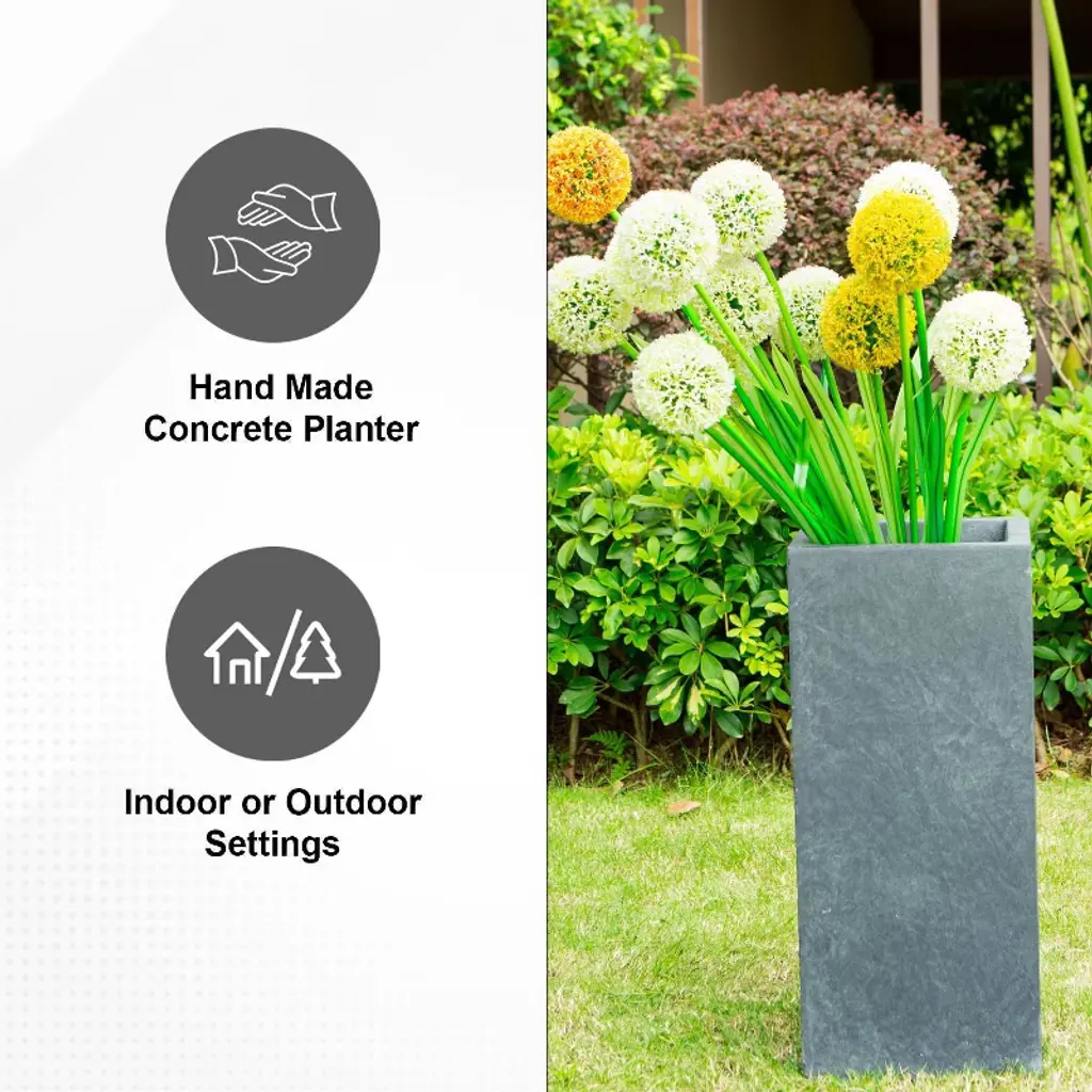 The Kante Rectangular Planter in a sleek charcoal finish combines contemporary style with long-lasting durability, making it a versatile choice for both indoor and outdoor spaces. Expertly crafted from lightweight yet sturdy concrete, it delivers weather-resistant performance in any climate while remaining easy to move and reposition. Its seamless silhouette with clean lines and built-in drainage holes prevents overwatering and supports healthy plant growth, ensuring your greenery thrives season after season. Perfect as a patio centerpiece, garden accent, or stylish indoor addition, this planter’s minimalist design and understated elegance blend effortlessly with both modern and traditional décor. Durable, functional, and timeless, it’s an essential piece for elevating any space with sophistication and practicality.