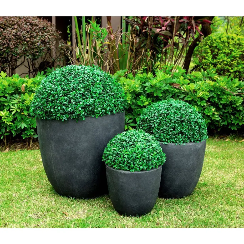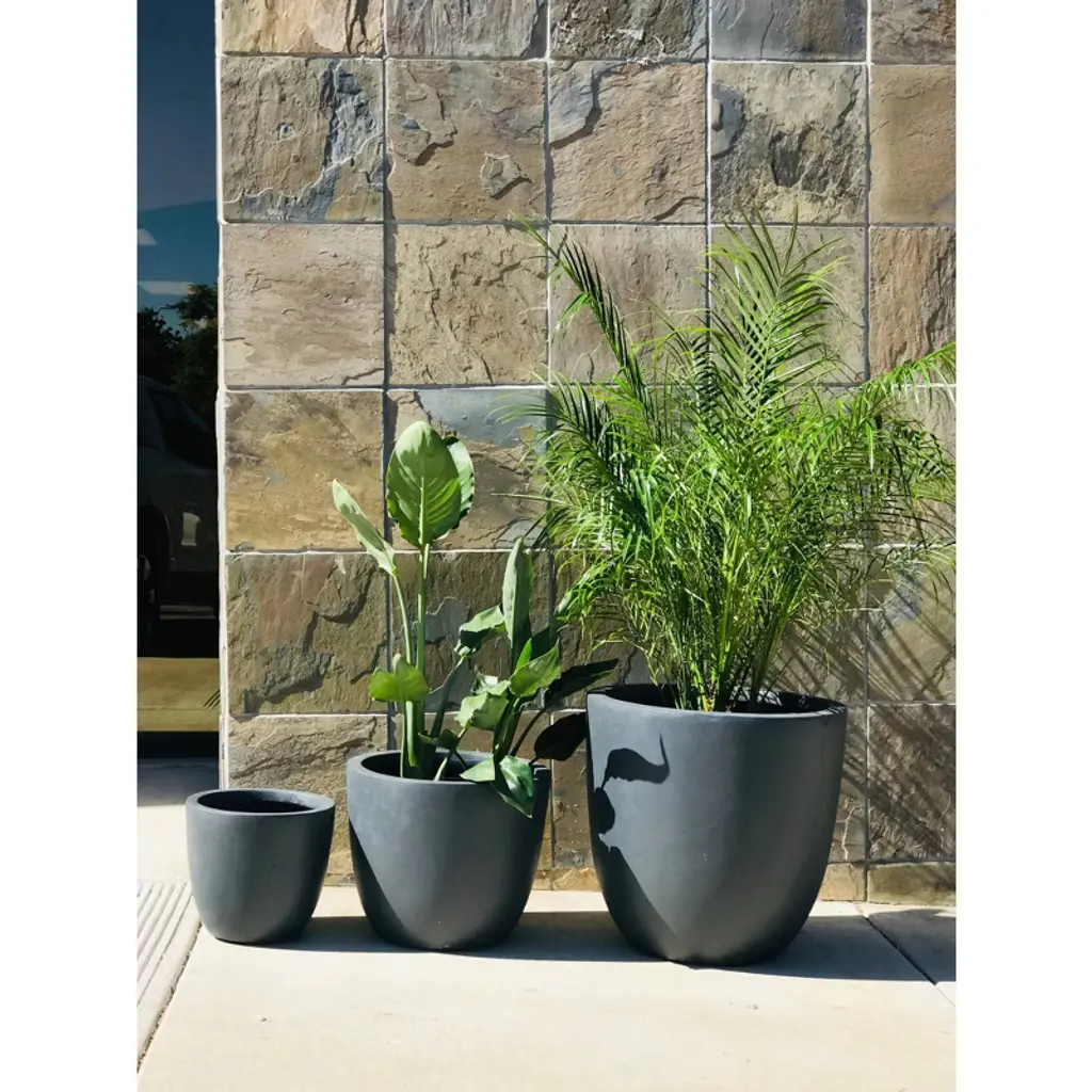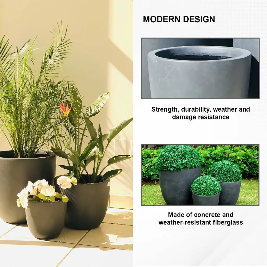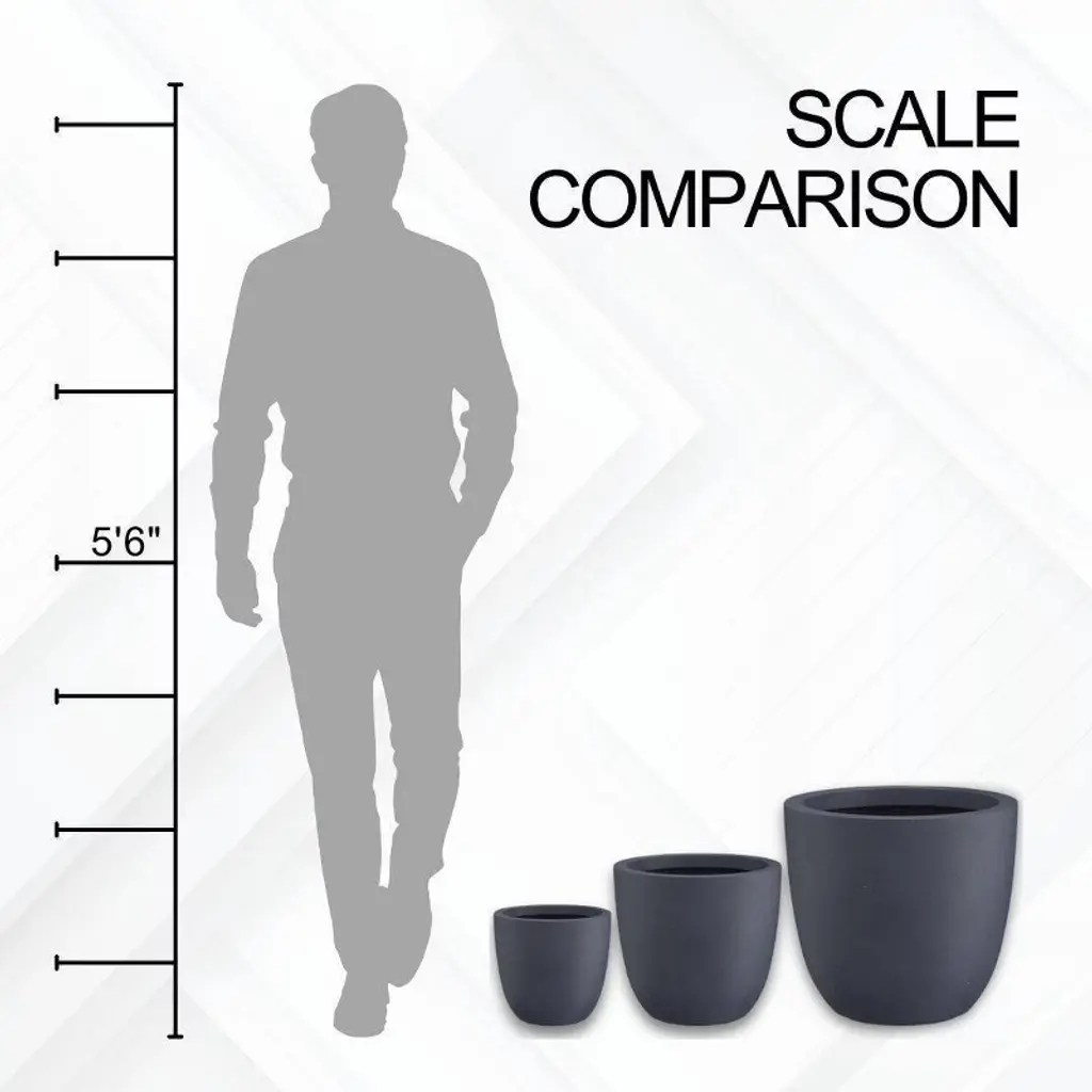 Rosemead Home & Garden, Inc. 3Pc Concrete Outdoor Planter Pot Small Medium And Large With Drainage Hole Black