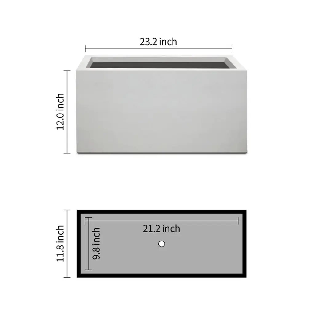 Rosemead Home & Garden, Inc. Kante Rectangular Concrete Indoor Planter Pots White 11.8" X 23" X 12"