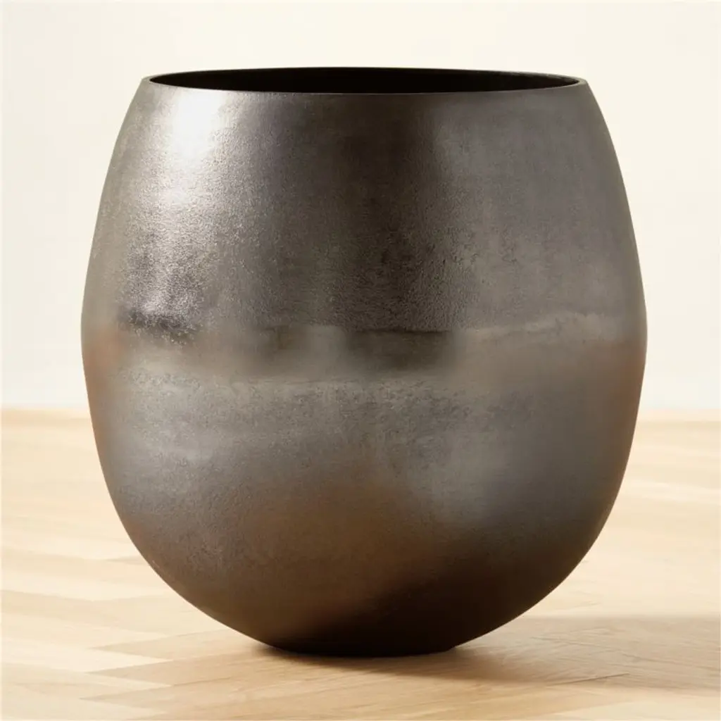 Substantial enough to anchor a space, large indoor planter is sized to hold trees and oversized houseplants. Crafted of rough cast aluminum, it's given a black powder coat and exterior plating that draws all eyes to its sleek finish. CB2 exclusive.