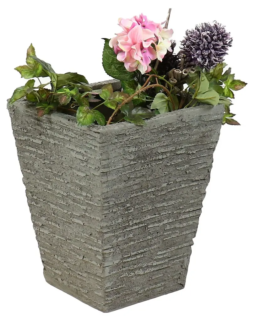 This planter looks like an antique find from a European farmhouse, but it was actually handcrafted in the USA of fiberglass cast with sand and pebbles to achieve the texture of stone, though it's lighter in weight. Suitable for use outdoors or in, it's more durable than concrete.