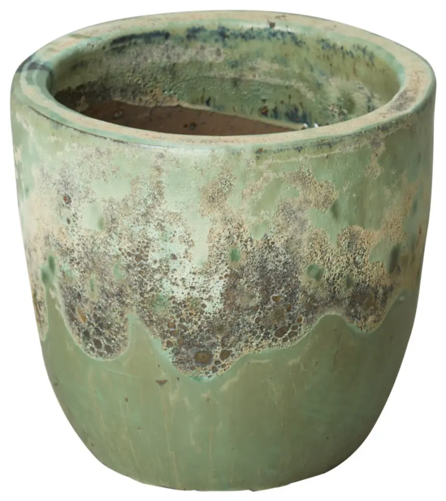 Beautiful round planter perfect for modern settings. The spa blue glaze adds a splash of color to any room. The reef finish on the rim gives the-piece a textured aesthetic. The handcrafted design delivers unparalleled quality.