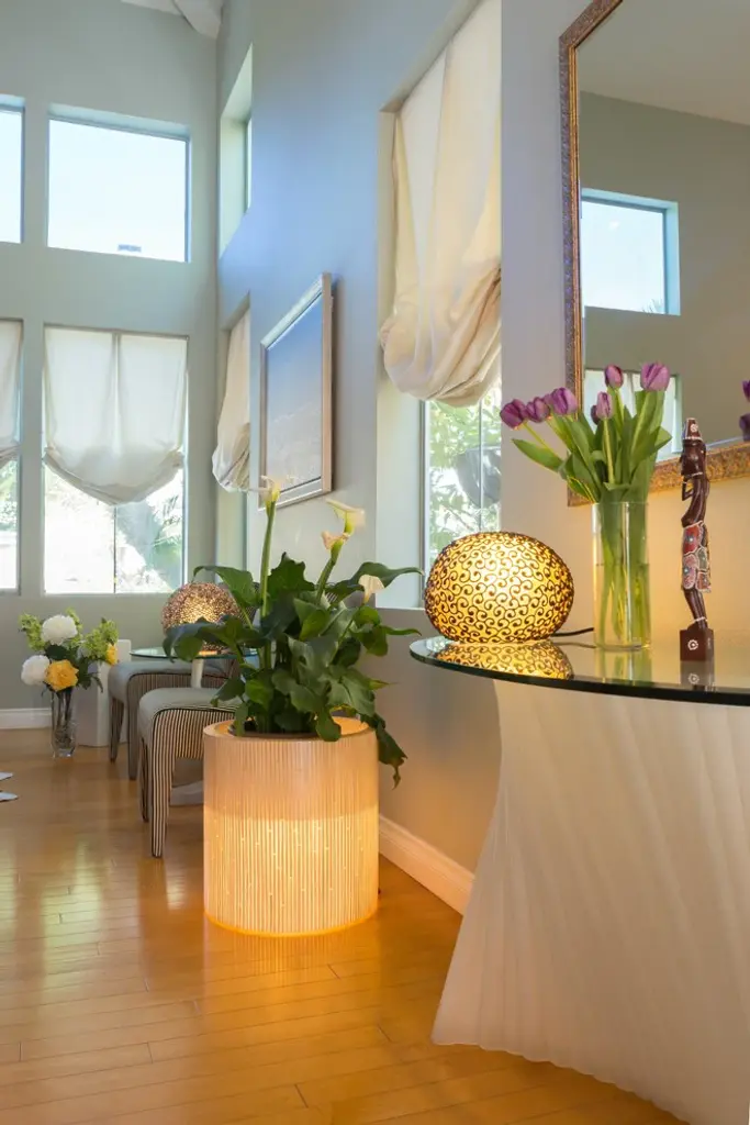 Round Planter with Wicker floor lamp is one of a kind of decorative lamp design for art decor as well as planter in mind. It accommodates different type of vase planter to enhance the beauty of the foliage or flowers. The wicker stripe is hand cut and pieces together individually. The glowing lights shine thru the gaps of the wicker creating a unique natural pattern.Note: Plant Not Included Specification:Material:Fiberglass with wicker decorationType: Indoor LampColor: Natural Wicker ColorBulb Base: E26/E27 Max. Watts: 60 WattsBulb Type: Regular or Standard E27 base light bulb (Bulb not included)Voltage Rating: 110V - 220VDimension: 15.8" Diameter and 17.7" HeightWeight: 9.2 Lbs.