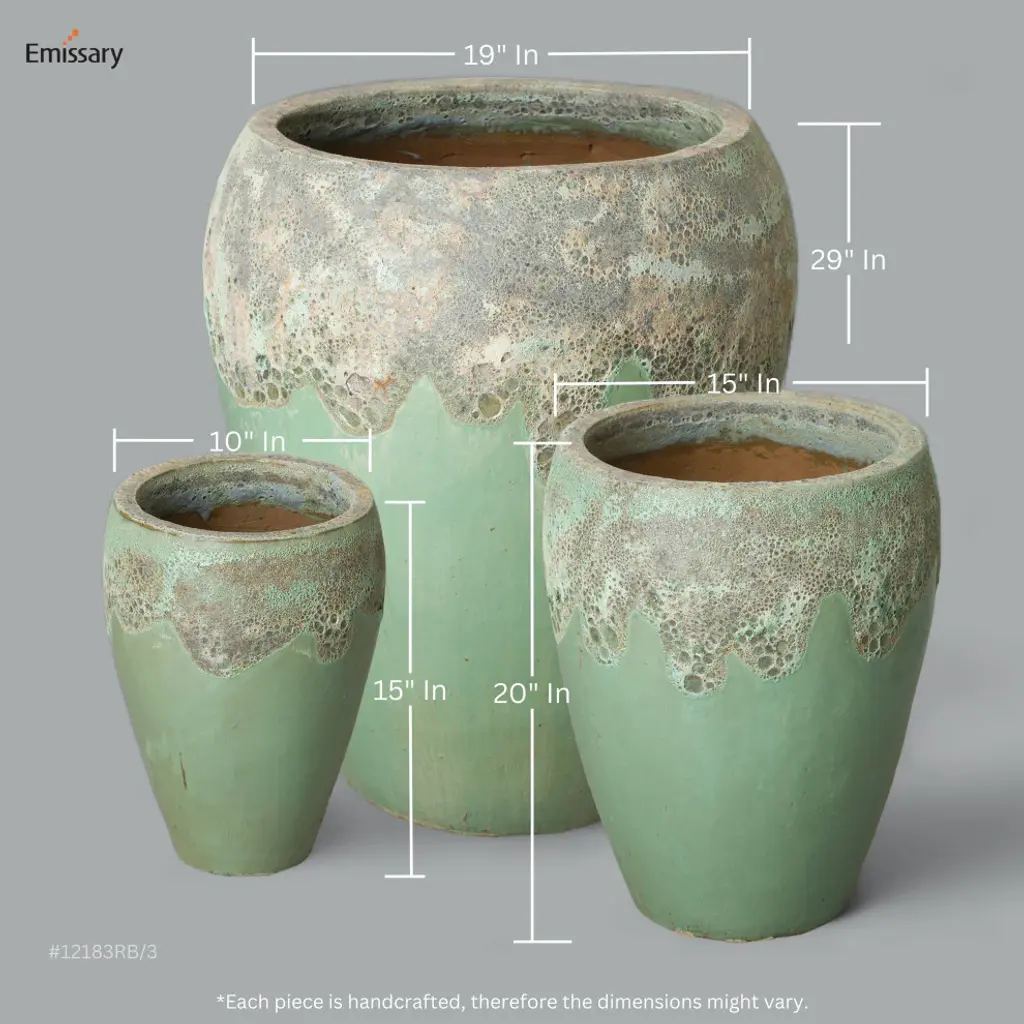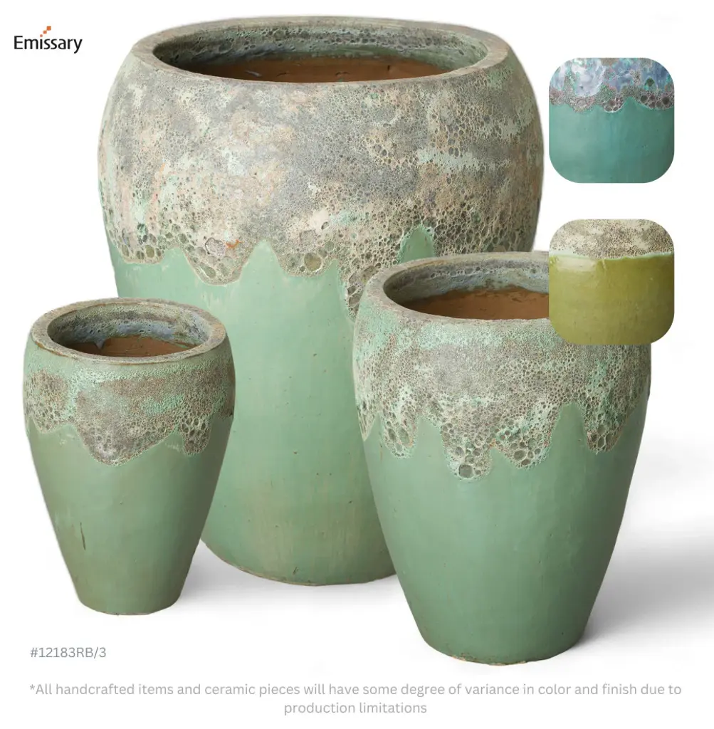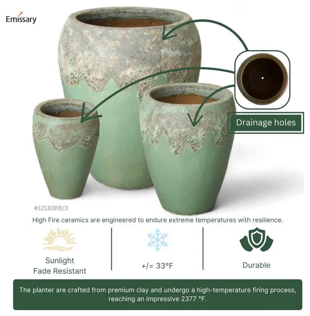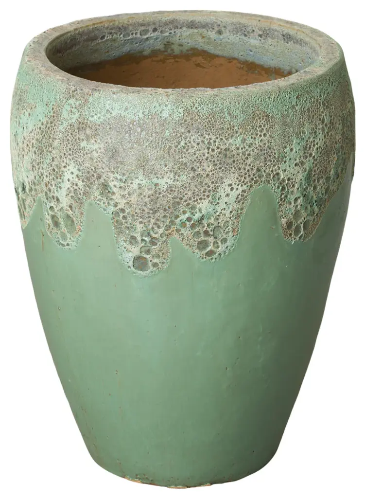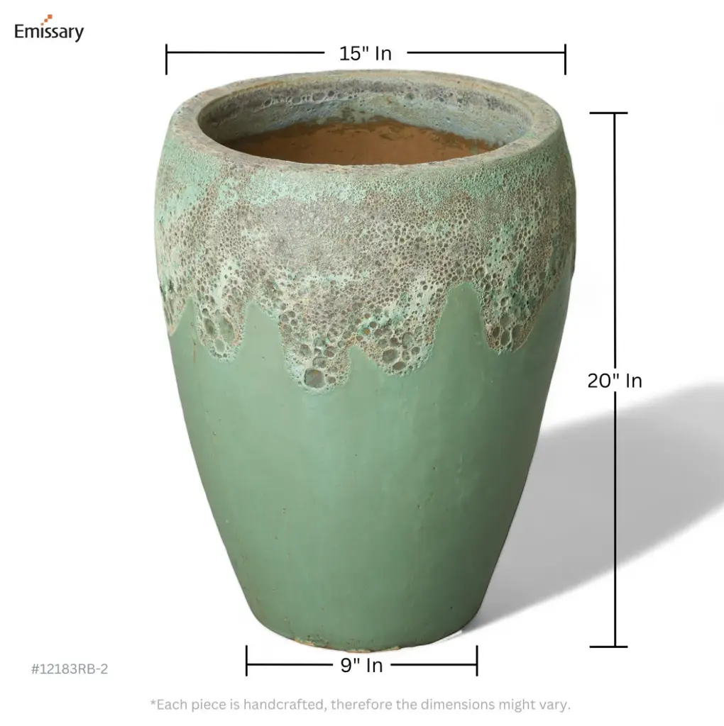 This round planter handcrafted from heavy red clay, perfect for outdoor pieces and finished with a reef spa blue glaze. Our spa blue glaze is a relaxing shade of light blue-green. The planter features a reef-style textured clay around its rim and 1 drainage hole. Accent your home with a classical design that brings rustic elegance to both indoor and outdoor living.