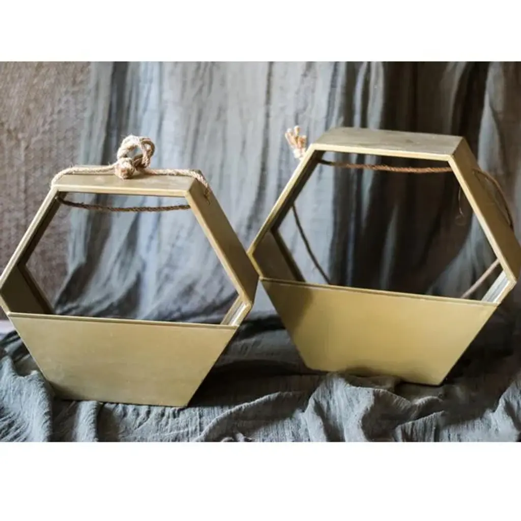 Rusticreach Gold Metal Planter Hexagon Hanging Planter - Large