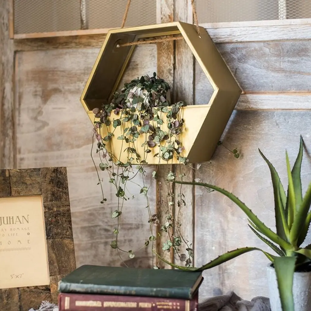 Rusticreach Gold Metal Planter Hexagon Hanging Planter - Small