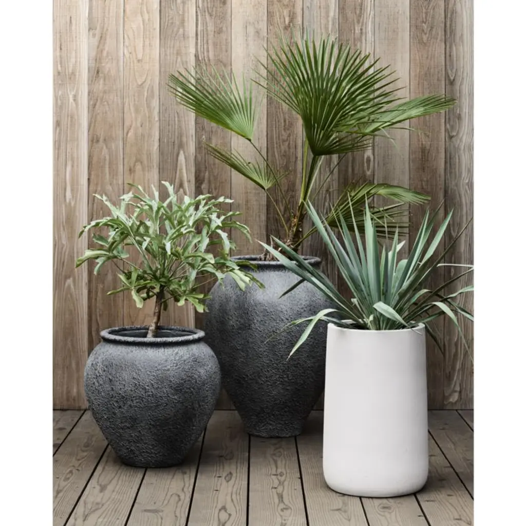 Plants really pop in our gracefully curved Saabira planter. The tall indoor/outdoor planter in decor-friendly taupe lends a contemporary look to layered container plantings or large houseplants. You can also use it as a cachepot for one of our faux trees or palms. Made of a durable mix of resin, fiberglass and stone, our exclusive, lightweight Saabira planter is designed to live indoors or out.