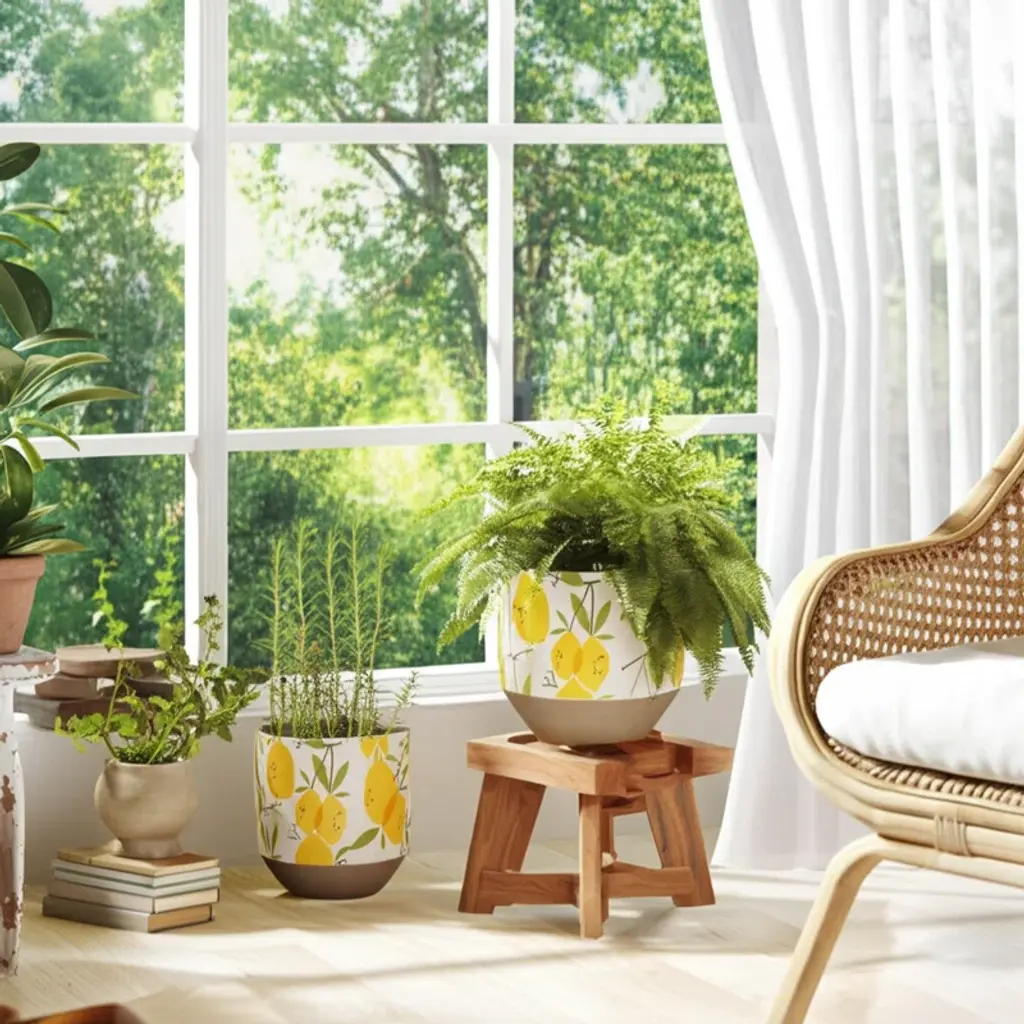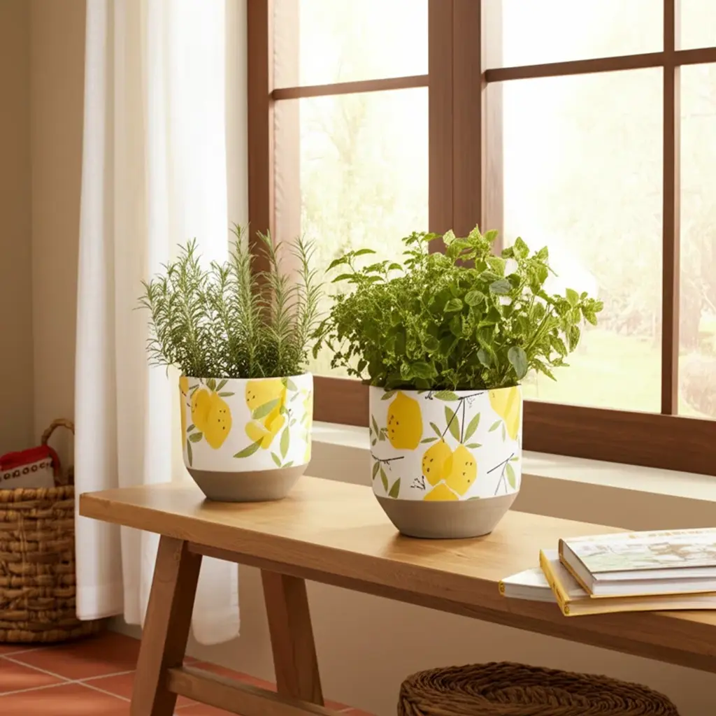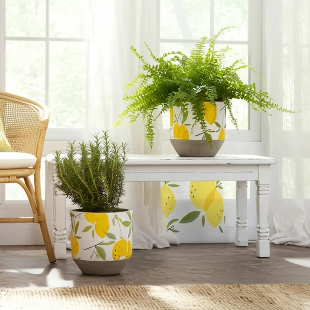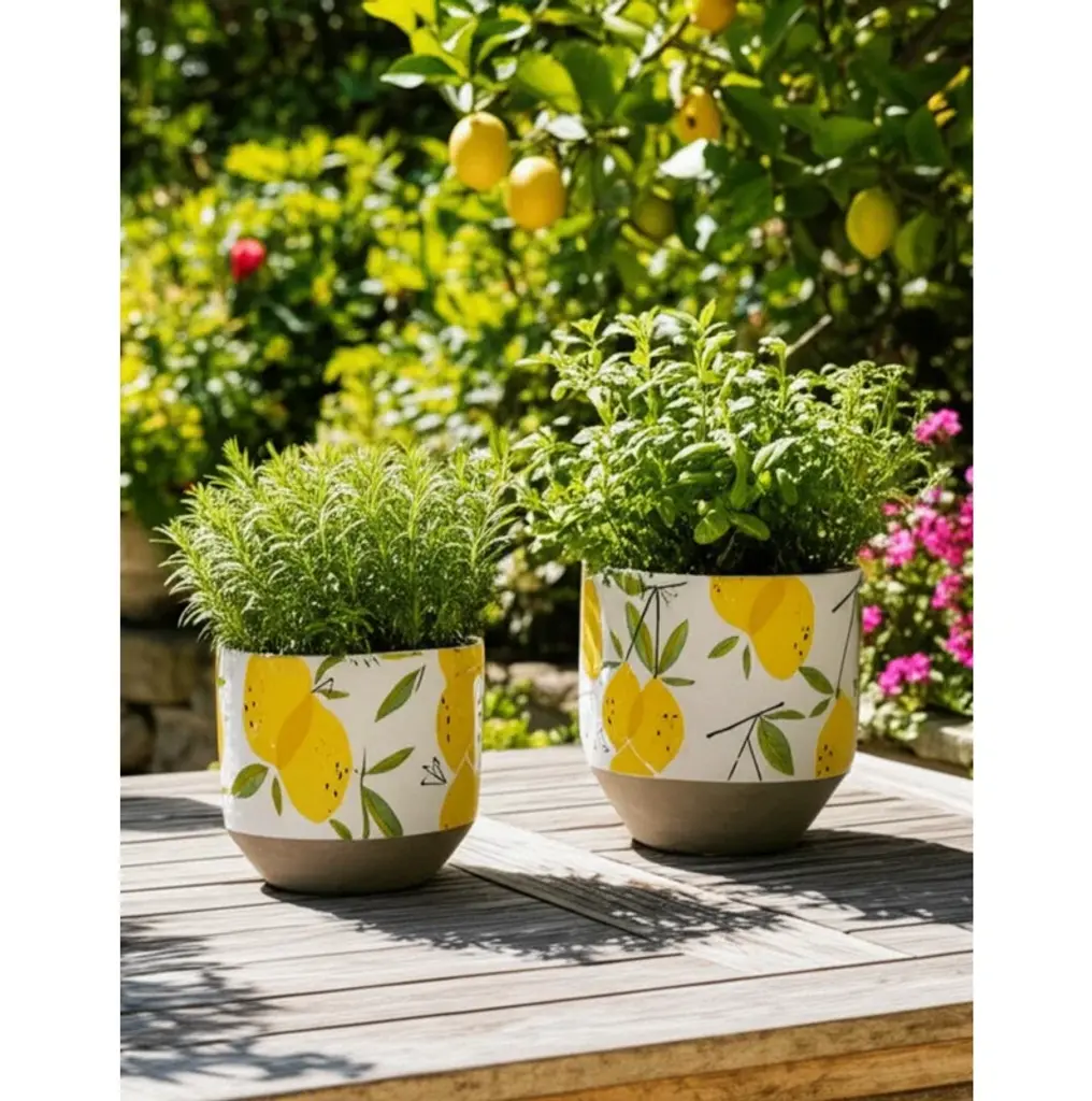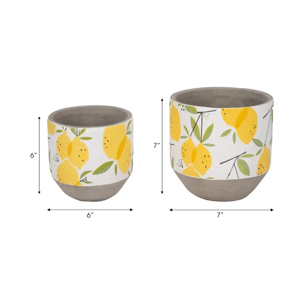 Sagebrook Home 2-Pieces Cement Growing Lemons Planter, Multi-Color