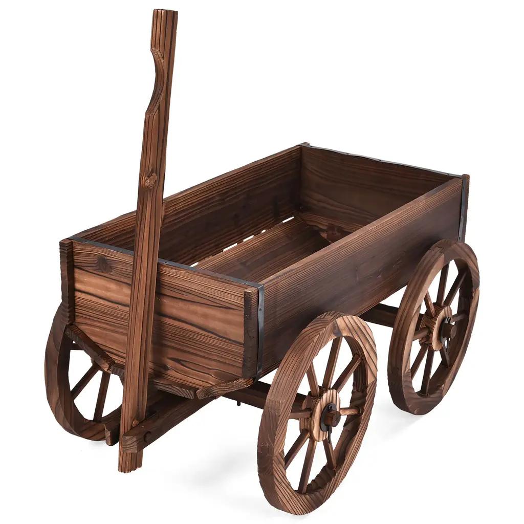 Samsgazebos English Wood Flower Cart Planter Stand, Treated Brown