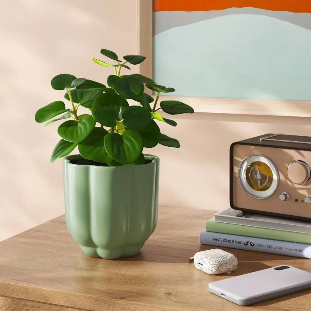 Give your plants a stylish new home in this Scalloped Planter from Room Essentials™. The planter pot features a round shape with allover scalloped detailing for an elegant look that goes well with virtually any decor. Indoor gardening is easy thanks to the built-in drainage hole, which ensures roots stay healthy, and the spacious body provides ample room for housing a variety of colorful flowers or green houseplants.Room Essentials™: Everyday Value