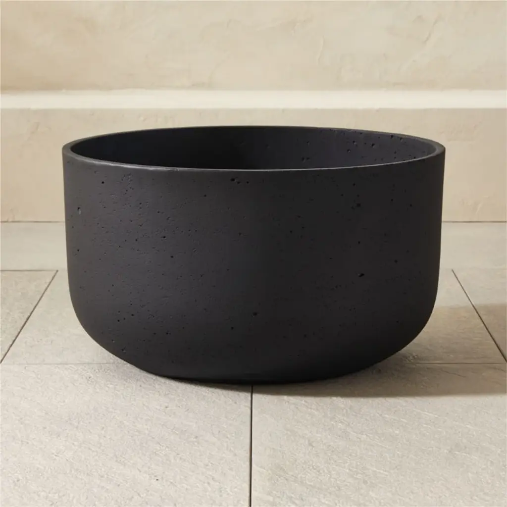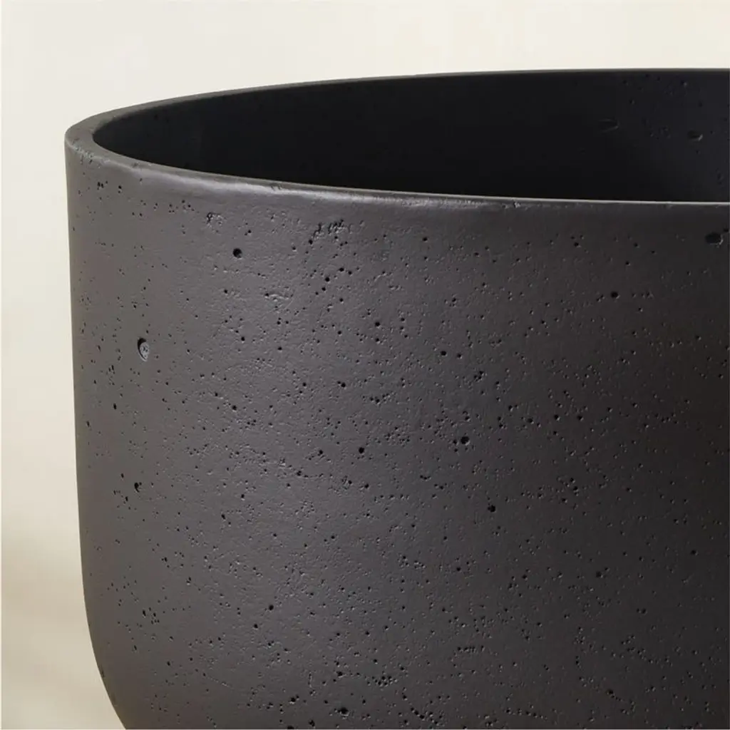 Raw material of the city cements the foundation for lush growth. Lightweight black planter lends texture and interest to the balcony, patio or porch. Works indoors, too, and thrives in multiples. CB2 exclusive.