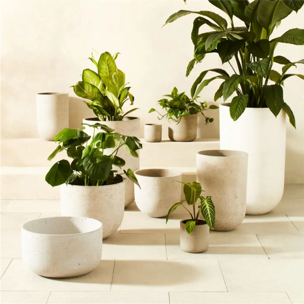 Raw material of the city cements foundation for lush growth. Grey planter brings strong industrial vibes to the balcony/patio/porch. Works indoors too, thrives in multiples. CB2 exclusive.