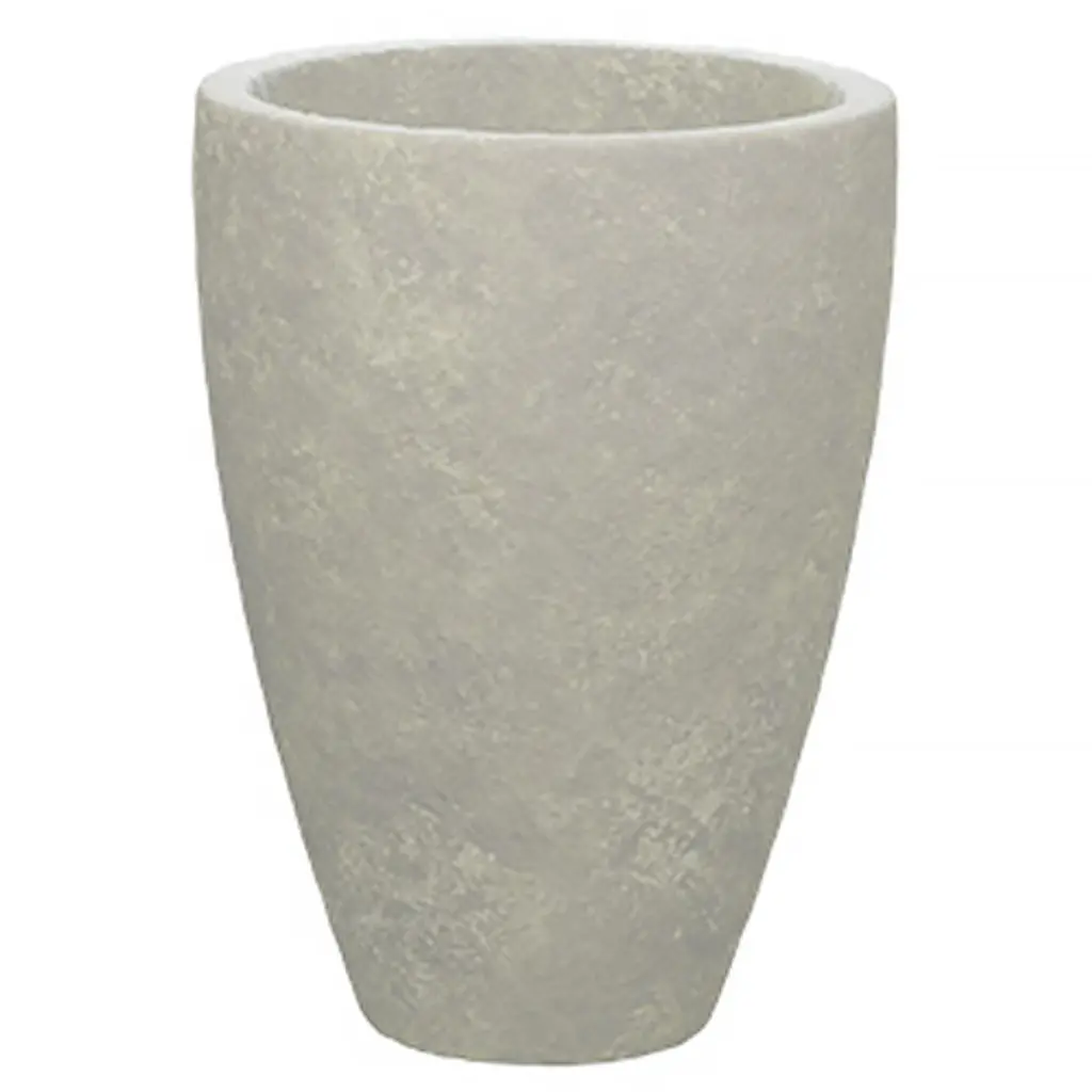 Designed with durability in mind, this three-foot-high cast-stone planter was made in the USA using locally sourced natural materials. Its hand-applied patina adds gravitas to its sleek design. The planter has a drainage hole in the bottom.