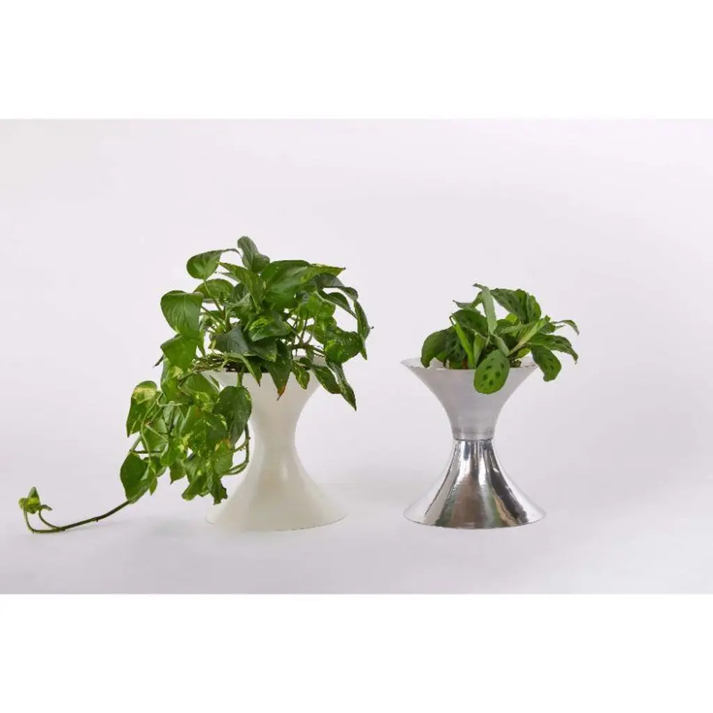 Set of 2 dawn planters, gray & white by Laun ( Handmade in Los Angeles )Dawn CollectionDimensions: H.27 D.25 W.35 cmMaterials: Polished Or Powder Coated AluminumAlso Available: custom sizing, and finishes upon request.Taking inspiration from the vivid symbolism in Octavia Butler’s science fiction novel Dawn, the Dawn Planter is designed in powder-coated or polished aluminum. LAUN is a Los Angeles-based design firm focused on enriching the built environment through architecture, furniture and creative collaborations.LAUN Studio prioritizes curiosity and exploration as the founding design tenants in architecture and interiors.LAUN was founded in 2018, when friends Rachel Bullock and Molly Purnell brought together their backgrounds in woodworking, metal working and architecture to build a practice of enduring spaces and products. The company’s objectline harnesses the unique talents of Los Angeles based manufacturers to craft timeless, heirloom quality furniture suitable for both indoor and outdoor use.
