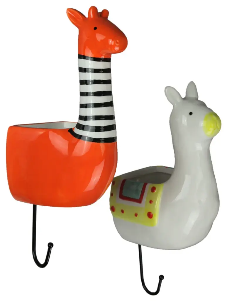 OVERALL SIZE - Giraffe - 3.25 Inches Long, 5 Inches Wide, 10.75 Inches High; Llama - 3.75 Inches Long, 5 Inches Wide, 10.5 Inches HighDURABLE MATERIAL - Made of Ceramic For Years of DisplayUNIQUE FINISH - Hand Painted Accents for a Splash of ColorCREATIVE DECOR - Great for Use with Air Plants, Succulents and HerbsPERFECT GIFT - For Yourself or Your Plant Loving Friends and FamilyAdd some adorable decor to your home with this set of two ceramic wall-hanging succulent planters. With one modeled after a giraffe and the other a llama, these cute little friends are happy to display some succulents while doubling as a key holder. Made from ceramic with a hand-painted finish, the giraffe measures 3.25 inches long, 5 inches wide, and 10.75 inches high; while the llama is 3.75 inches long, 5 inches wide, and 10.5 inches high. Each has a premade hole for quick and easy mounting, great for any living room, bathroom, or bedroom.