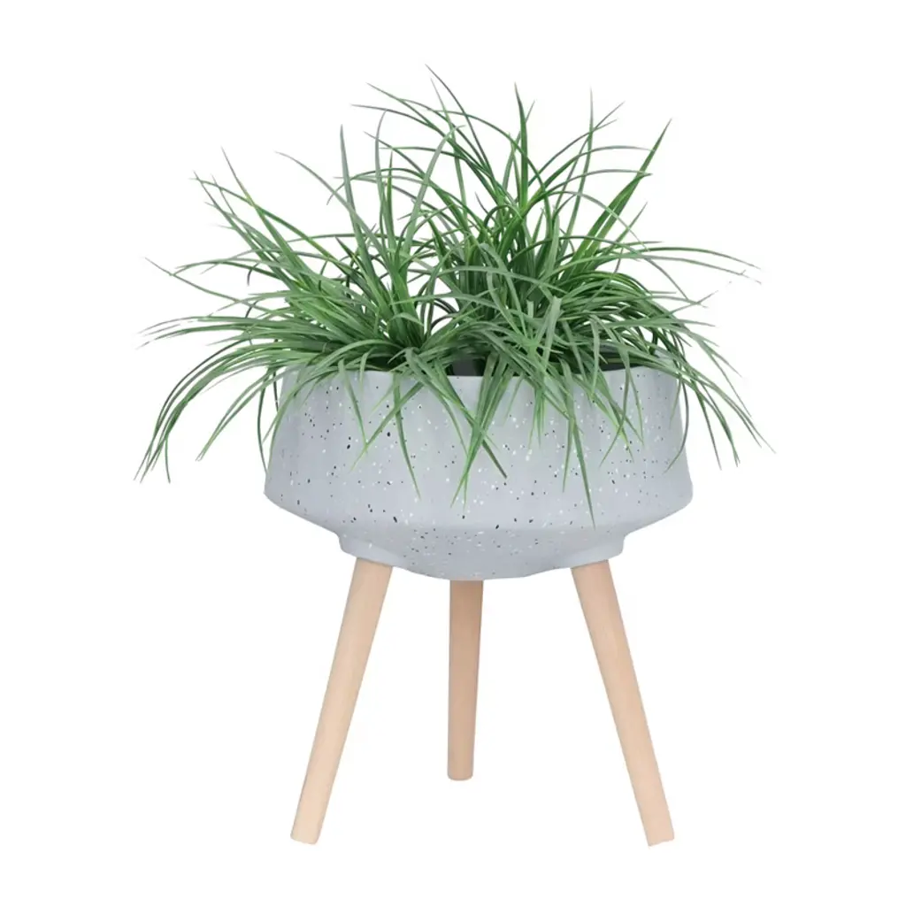 Enhance your home or garden with this stylish set of two modern planters with stands, designed to bring a touch of elegance and greenery to any space. Crafted from durable resin with sturdy beech wood legs, these decorative plant pots offer a contemporary yet natural aesthetic that complements Scandinavian, minimalist, and modern interiors. The speckled gray finish adds visual appeal, making these elevated planter pots an ideal addition to living rooms, patios, balconies, or gardens. Designed for both indoor and outdoor use, they provide a versatile solution for displaying a variety of plants, including succulents, cacti, flowers, and herbs. The raised wooden legs not only add stability but also improve light exposure and airflow to promote healthier plant growth. With dimensions of 11x11x8 inches and 15x15x10 inches, this planter set allows you to create dynamic plant arrangements that enhance your decor with an elevated, stylish touch. Constructed from lightweight yet sturdy resin, these planters resist fading, cracking, and moisture, ensuring long-lasting durability in any environment. The easy assembly makes setup hassle-free, while the neutral gray tone blends seamlessly with any color scheme, allowing your plants' natural beauty to stand out. Whether you're looking to refresh your indoor decor or add a stylish accent to your patio, these modern plant holders provide an elegant and functional solution. Transform your space with these beautifully designed plant stands that elevate your greenery effortlessly. Add them to your home today and create a stunning botanical display.