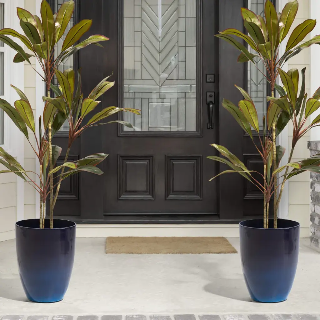 Set Of 2 Oversized Eco-Friendly Pe Faux Ceramic Planter, Cobalt Blue
