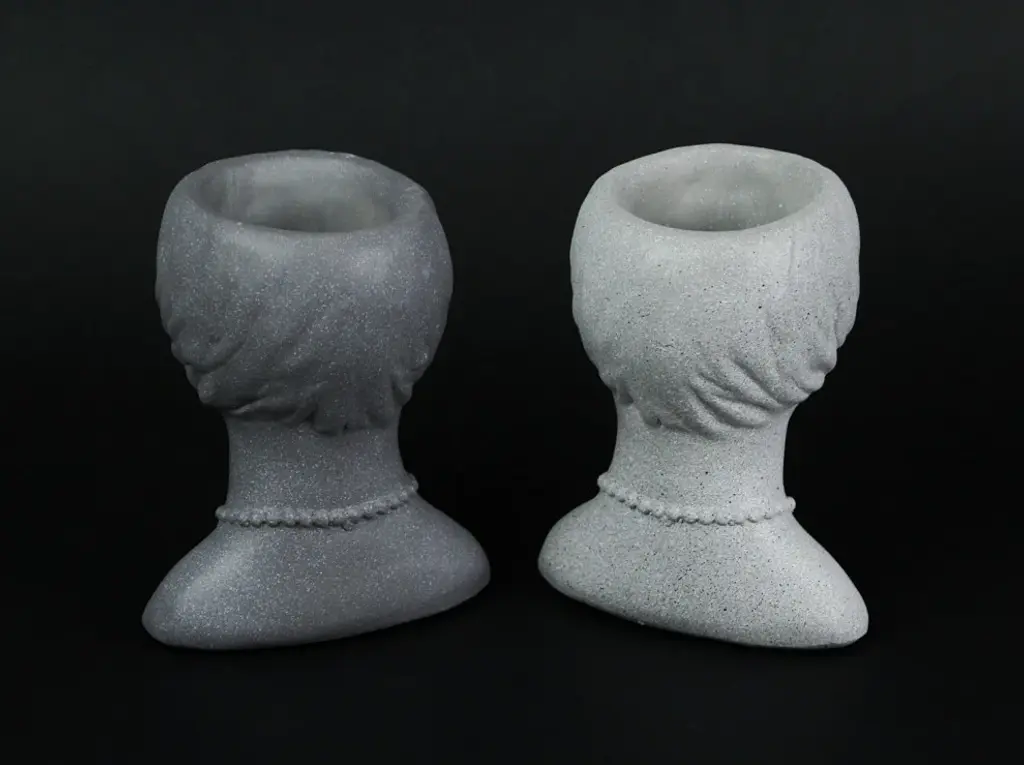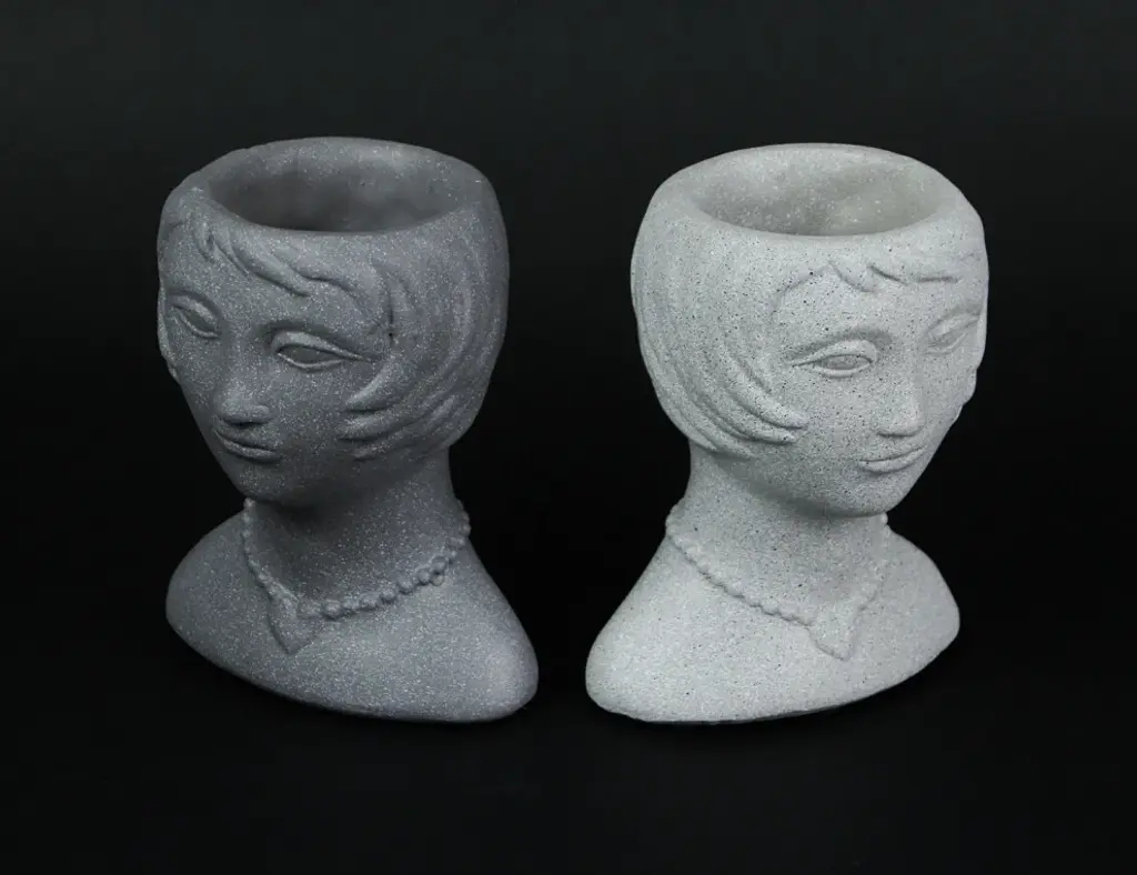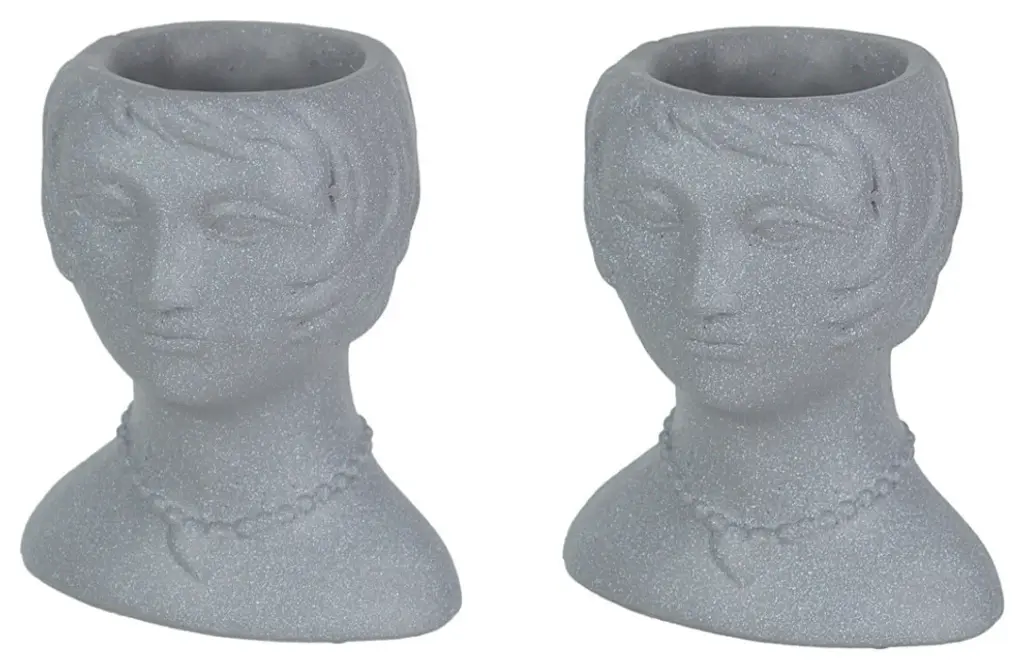 Set Of 2 Roaring 20's Flapper Lady Gray Concrete Head Mini Planter 6 Inches Tal