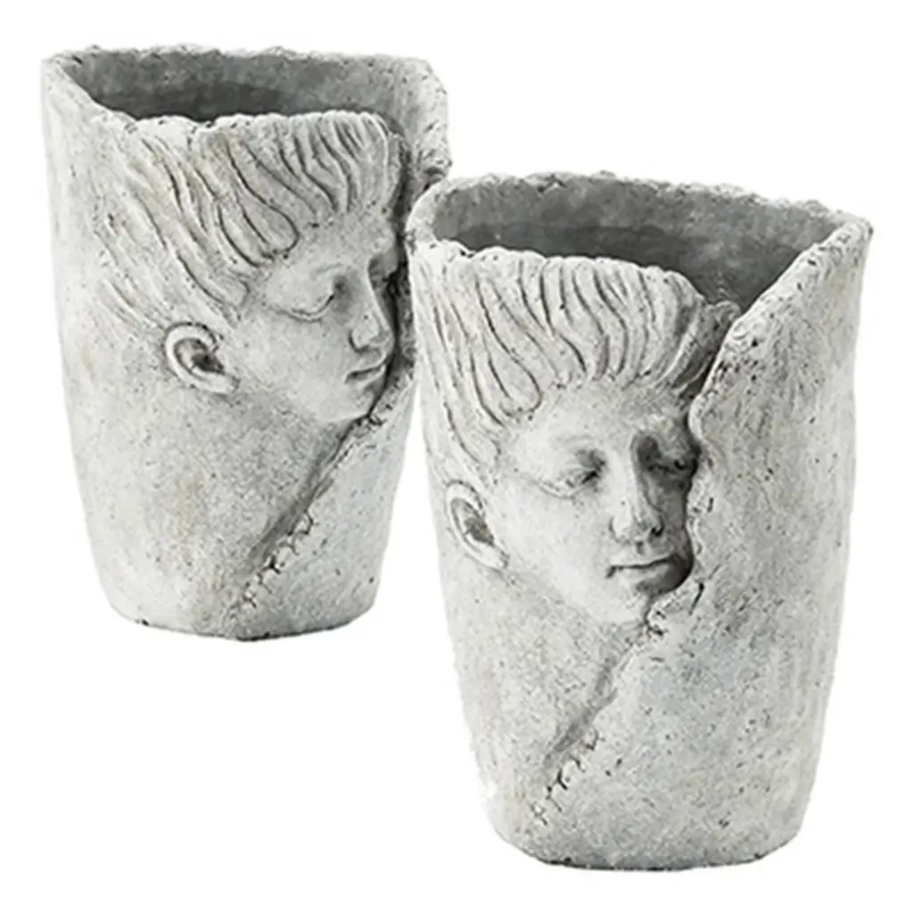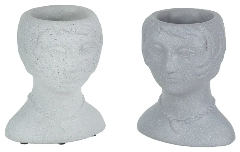 OVERALL SIZE - Each Planter Measures 6 Inches High, 5 Inches Long, 4 Inches WideDURABLE MATERIAL - Crafted of High Quality Concrete For Years of Maintenance Free DisplayUNIQUE FINISH - Weatherworn Accents Create a Classic Aged LookWHIMSICAL STYLE -Flapper Hairstyle and Heart Necklace Accents Add a Fun Feel to Any DecorWONDERFUL GIFT - For Yourself or your Plant Loving FriendsThis beautiful Roaring 20''s Flapper style female head-shaped garden planter is a perfect way to add some Speakeasy style and personality to any room, porch, or patio. These 6-inch high, 5-inch wide, and 4-inch deep cement mini planters are perfect to give your succulents, greenery, or floral blooms new life! Whether on a pedestal or standing in your home or in the dirt of your garden, these planters are sure to give you a heady planting experience!