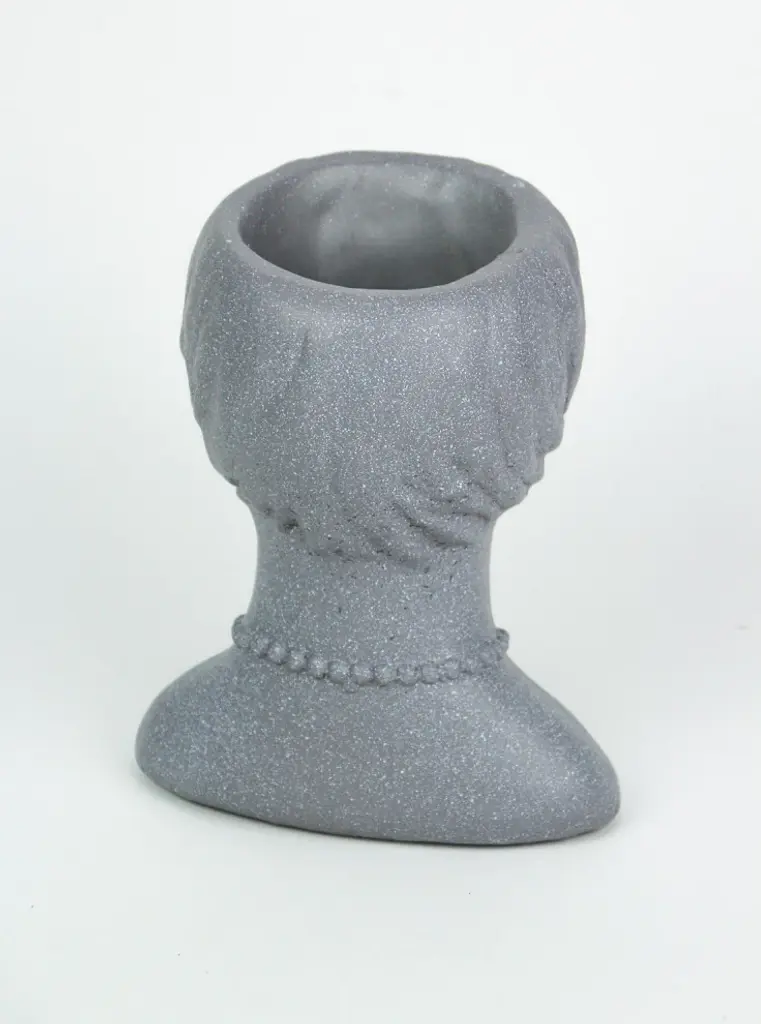 OVERALL SIZE - Each Planter Measures 6 Inches High, 5 Inches Long, 4 Inches WideDURABLE MATERIAL - Crafted of High Quality Concrete For Years of Maintenance Free DisplayUNIQUE FINISH - Weatherworn Accents Create a Classic Aged LookWHIMSICAL STYLE -Flapper Hairstyle and Heart Necklace Accents Add a Fun Feel to Any DecorWONDERFUL GIFT - For Yourself or your Plant Loving FriendsThis beautiful Roaring 20''s Flapper style female head-shaped garden planter is a perfect way to add some Speakeasy style and personality to any room, porch, or patio. These 6-inch high, 5-inch wide, and 4-inch deep cement mini planters are perfect to give your succulents, greenery, or floral blooms new life! Whether on a pedestal or standing in your home or in the dirt of your garden, these planters are sure to give you a heady planting experience!