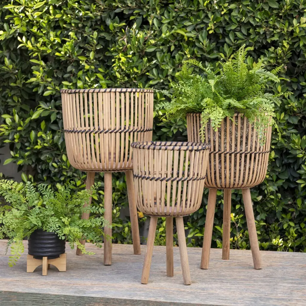 Set Of 3 Bamboo Wood Planters (11" 13" 15") – Decorative Plant Pots For Succulents, Houseplants & Home Decor