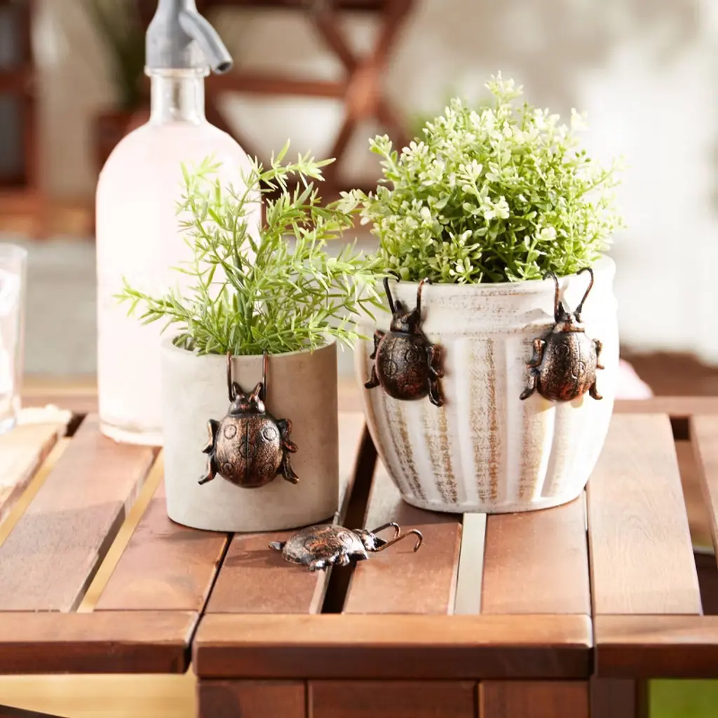 Set Of 4 Ladybug Cast Iron Pot Hanger Bronze - Zings & Thingz: Outdoor Planter Stands, No Assembly Required