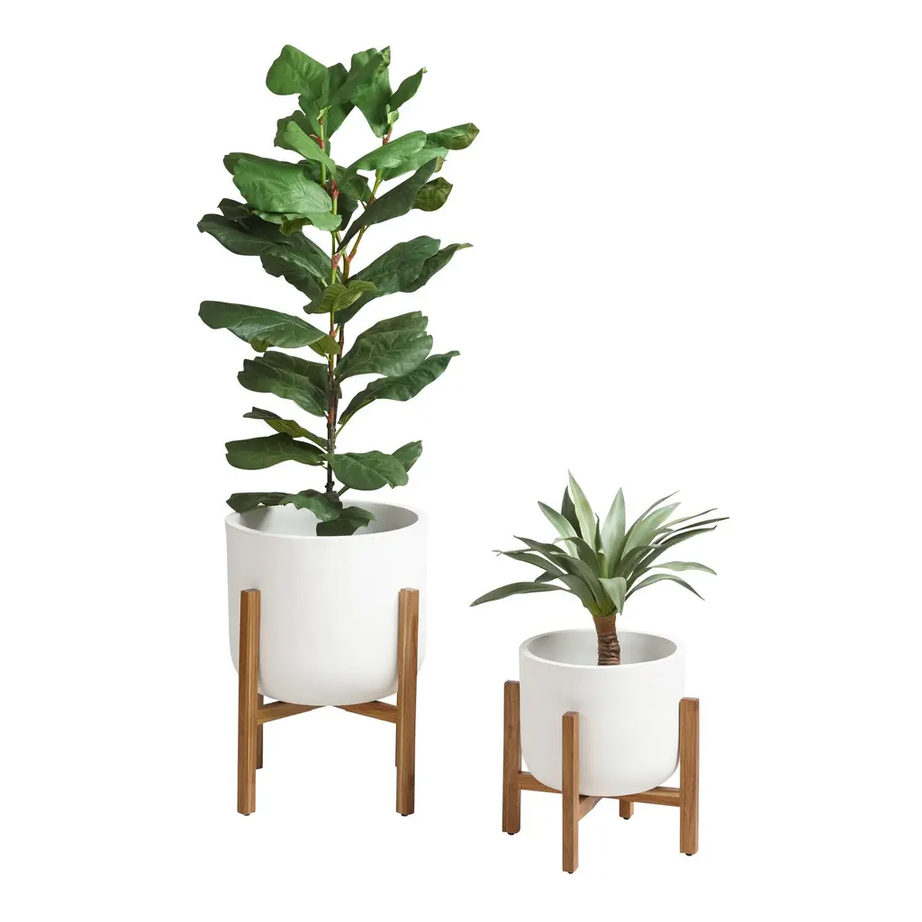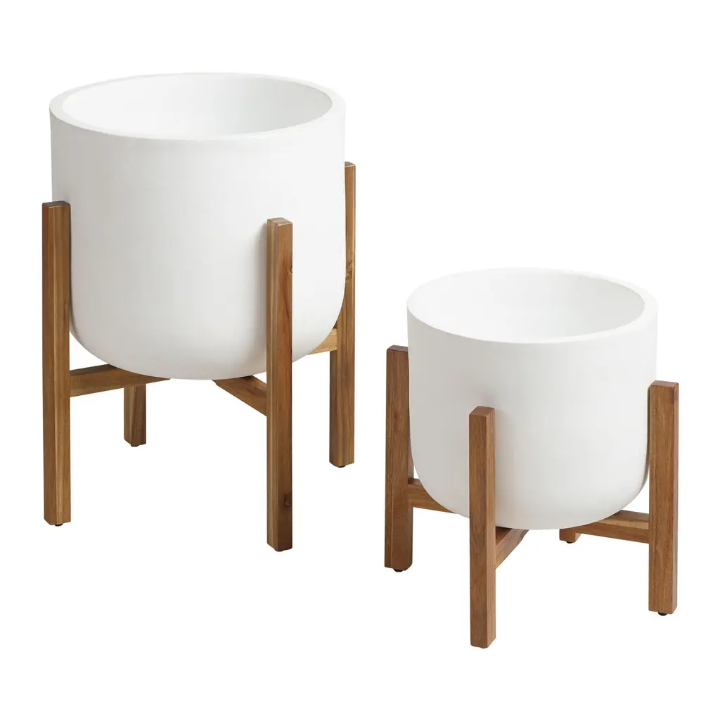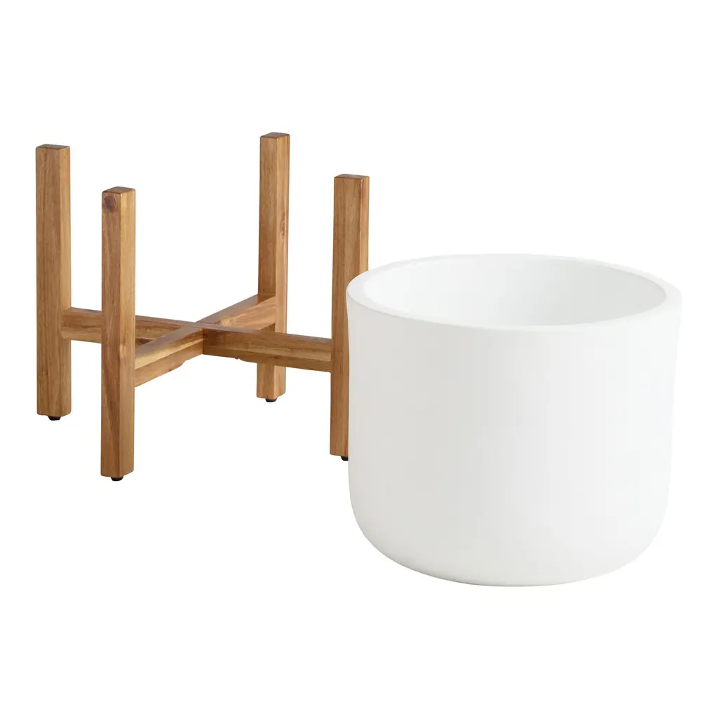 Inspired by the iconic Spanish town for which it's named, our Sevilla planter stands on solid acacia wood legs. Set upon its wooden stand, its height allows for the drama of a cascading plant to spill over its sides. Subtle design details like its softly rounded curves and matte finish in your choice of stylish hues make this planter stand out.