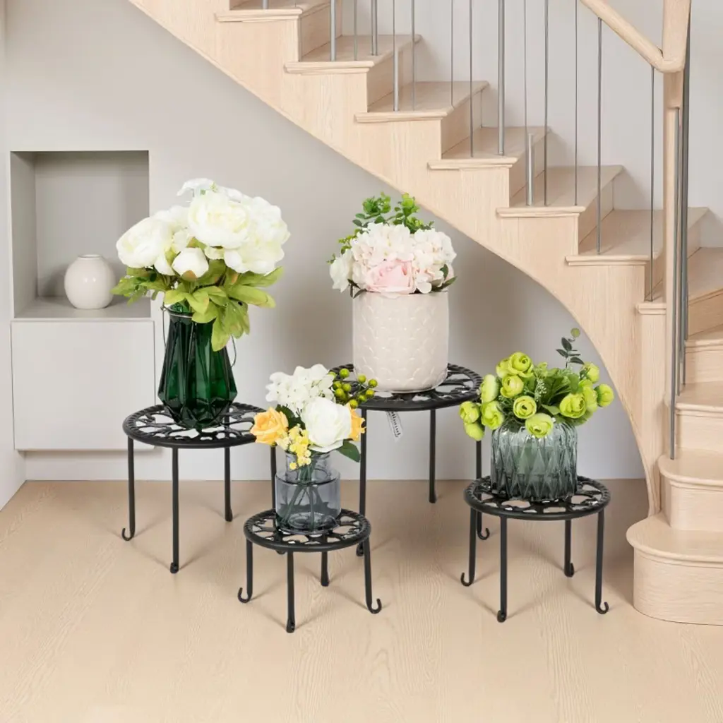 SEVOBAL versatile stand set provides elevated display solutions for both functional and decorative needs. The sturdy iron construction safely lifts heavy planters while adding architectural interest to any space. Perfect for creating tiered garden arrangements, buffet serving stations, or accent displays, the classic black finish blends effortlessly with any color scheme or design style.